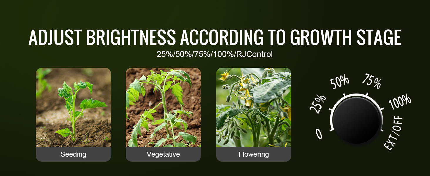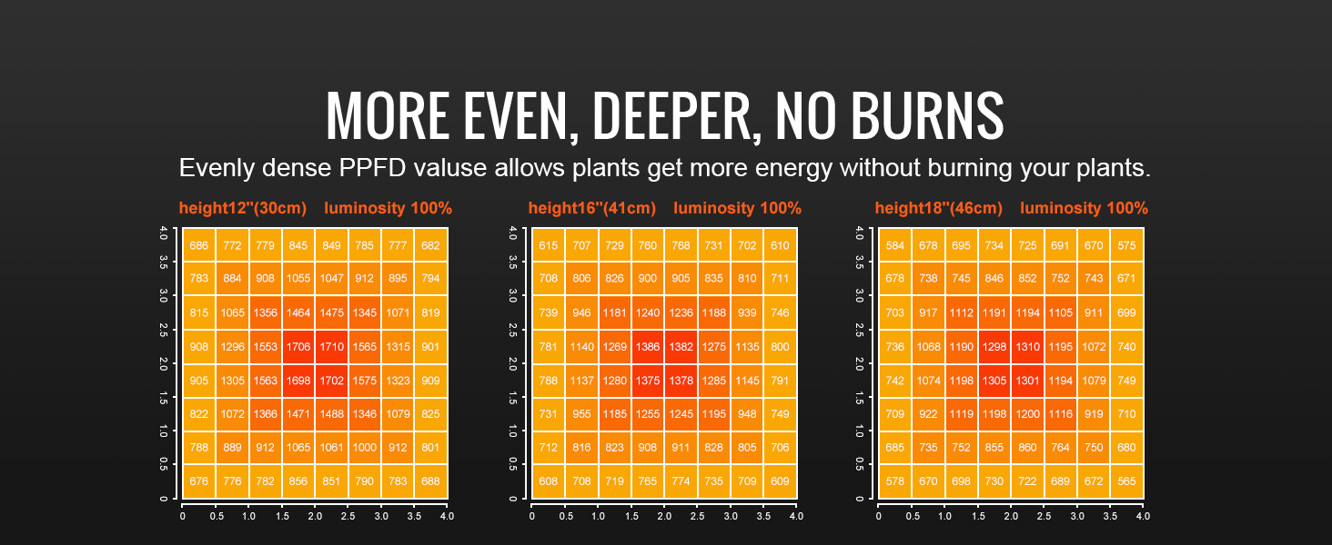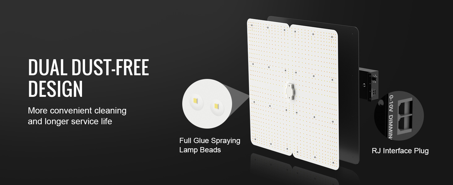- Efficient Cooling & Quiet Operation: This grow light is designed with an advanced cooling system, featuring an expanded cooling area and a fanless structure. It ensures a quiet environment while preventing overheating and potential damage. The IP65 waterproof rating and dual dustproof protection contribute to a long lifespan of up to 50,000 hours, making it a reliable choice for your plants.