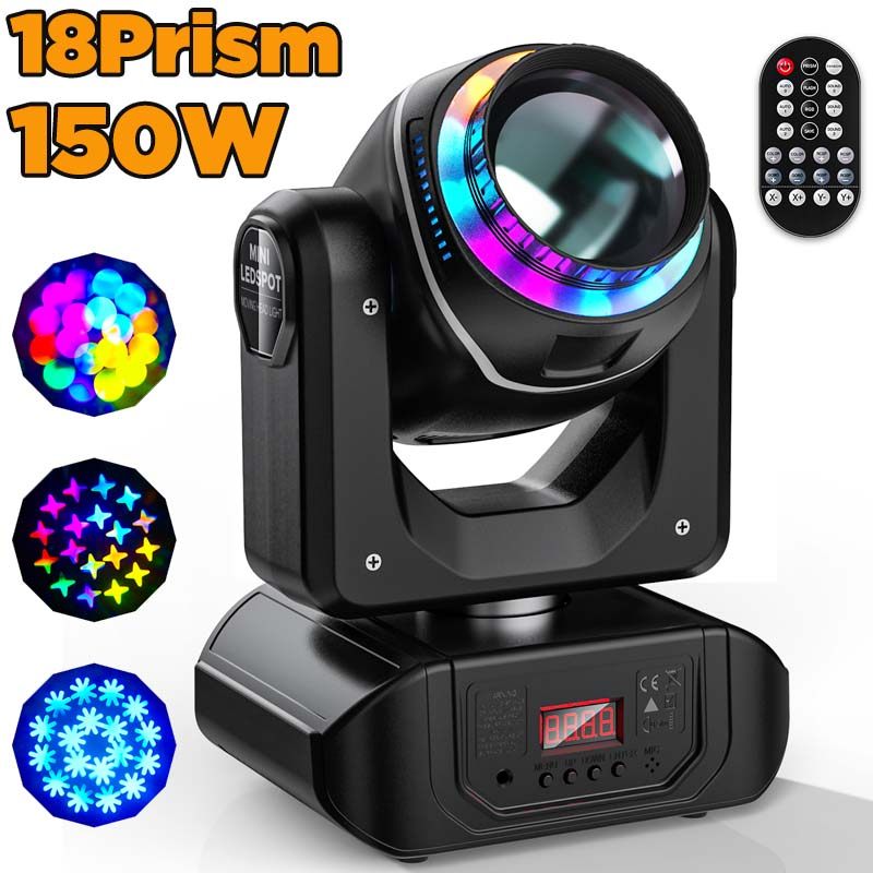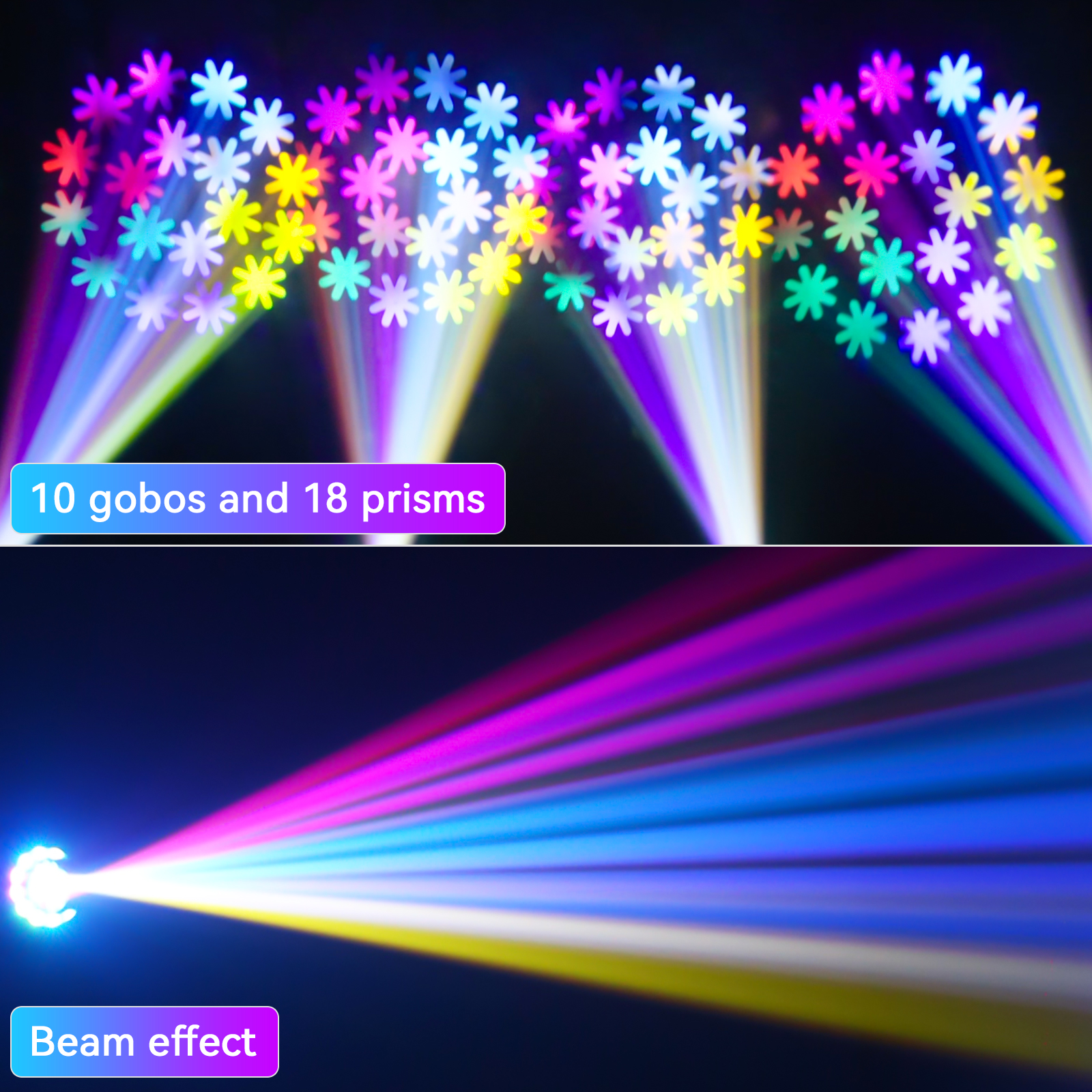 1. Uses a 1PC 100W LED white light bead and 12PCS 5050 4-in-1 LED light beads, 8 colors, 10 gobos and 18 prisms, bright and colorful. This combination will give you a different visual experience.