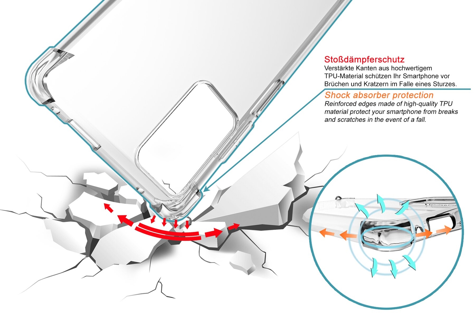 La couverture arrière flexible et transparente préserve l'apparence de votre smartphone sans être appliquée. Le matériau est antidérapant et votre smartphone est donc bien et en sécurité en main. Grâce aux découpes pour toutes les connexions importantes telles que les câbles de charge, les écouteurs, etc., le smartphone ne doit jamais être retiré de la boîte.