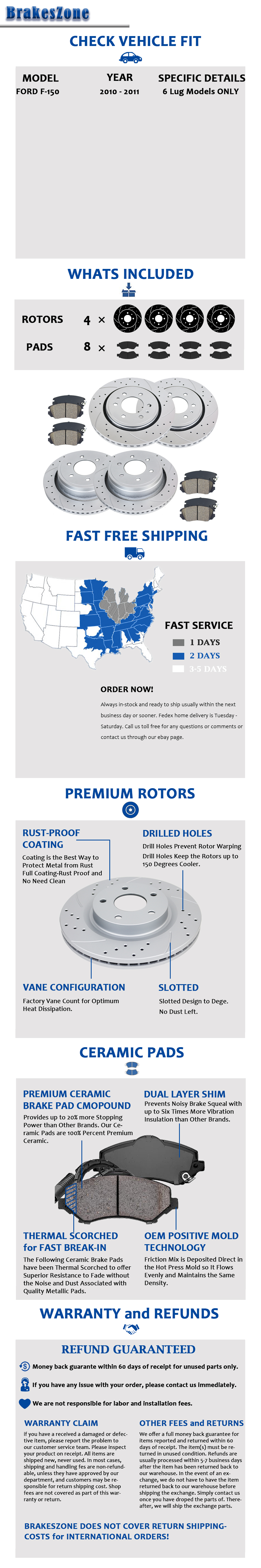 Front Brake Rotors Pads fit for Ford F150 Lincoln Mark LT Drilled Slotted Brakes