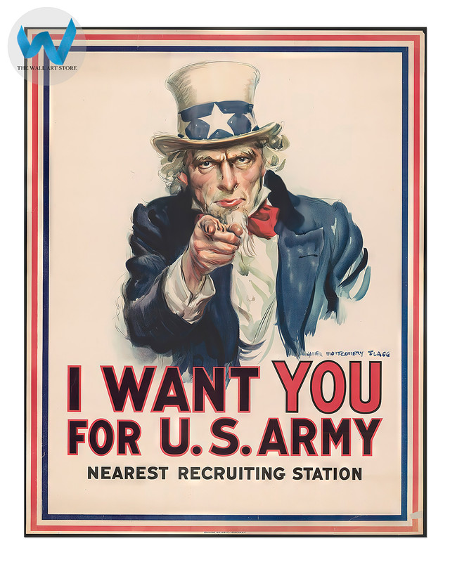 STRIKING VISUAL QUALITY - Printed on premium Epson luster paper 260gsm, this iconic 'I Want YOU for U.S. Army' poster by James Montgomery Flagg features vibrant colors and precise detailing. The high-quality printing technique captures the boldness of Flagg's original design, ensuring that each poster looks sharp and dynamic.