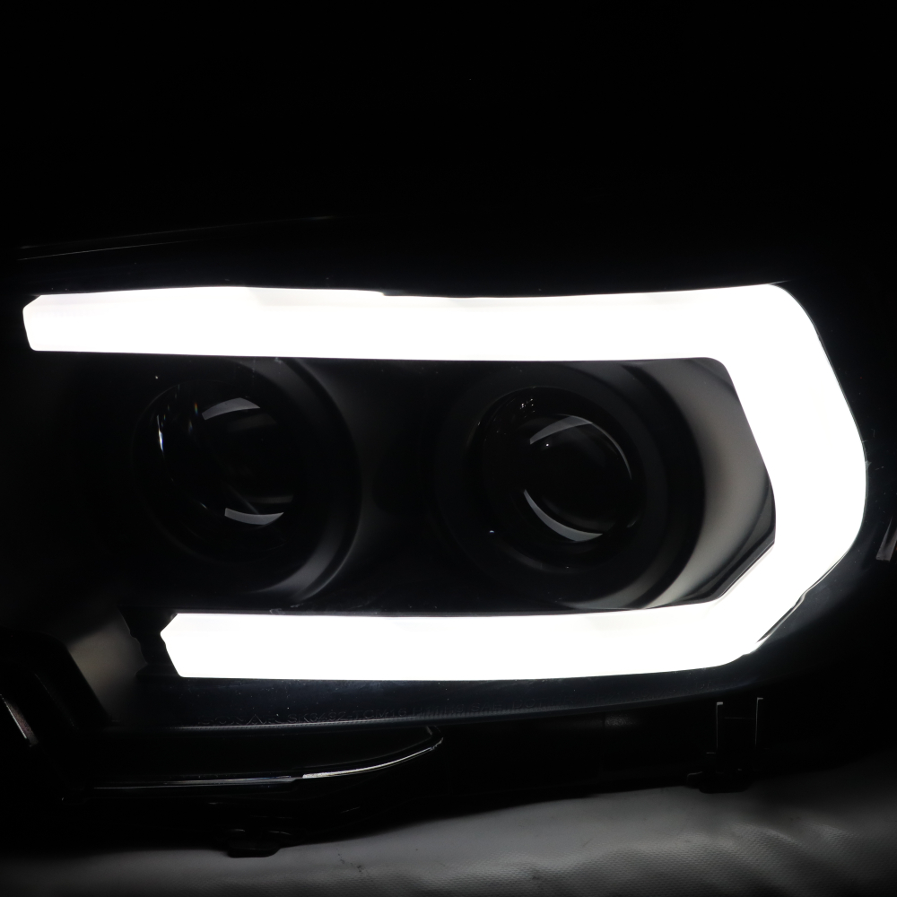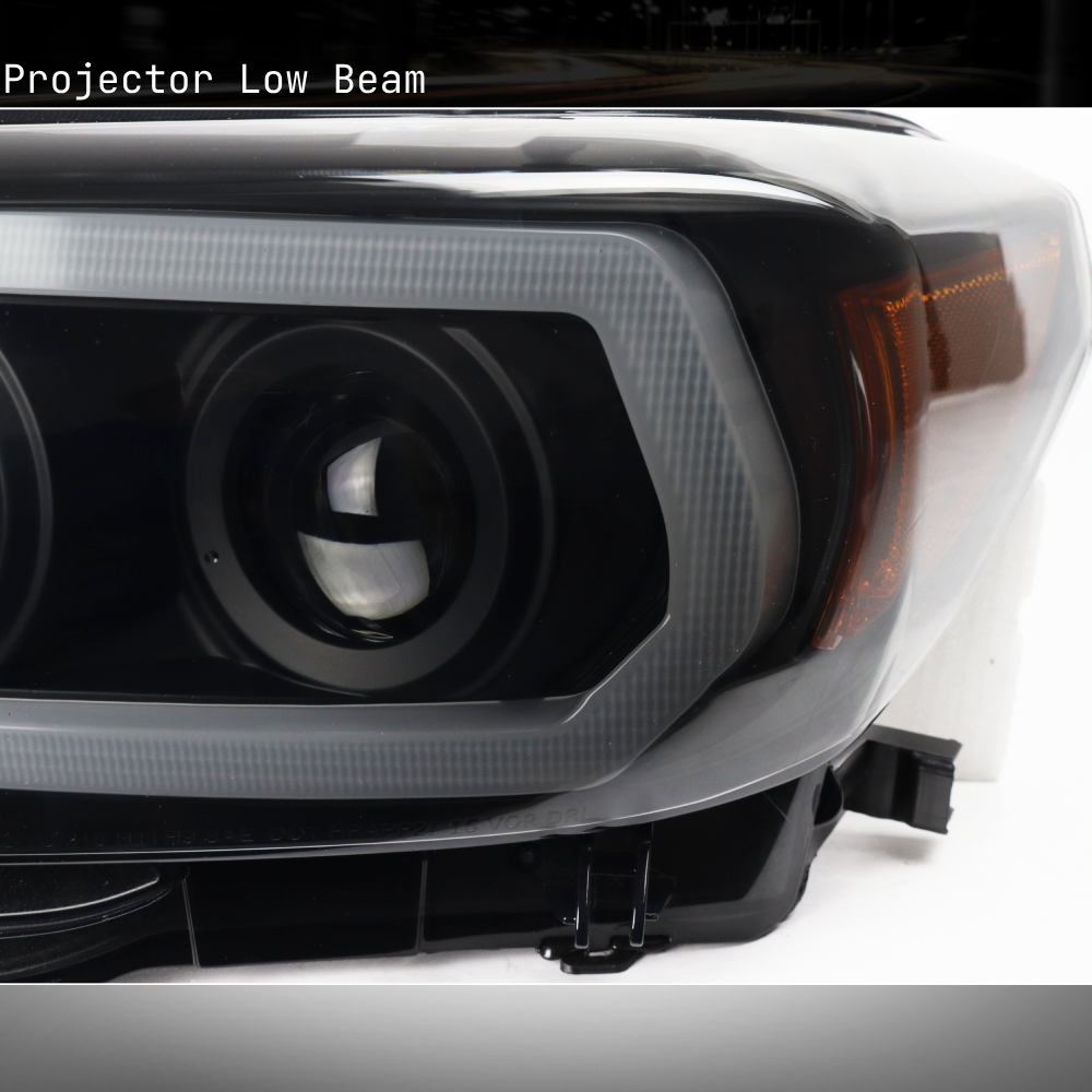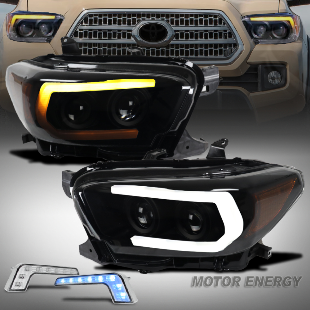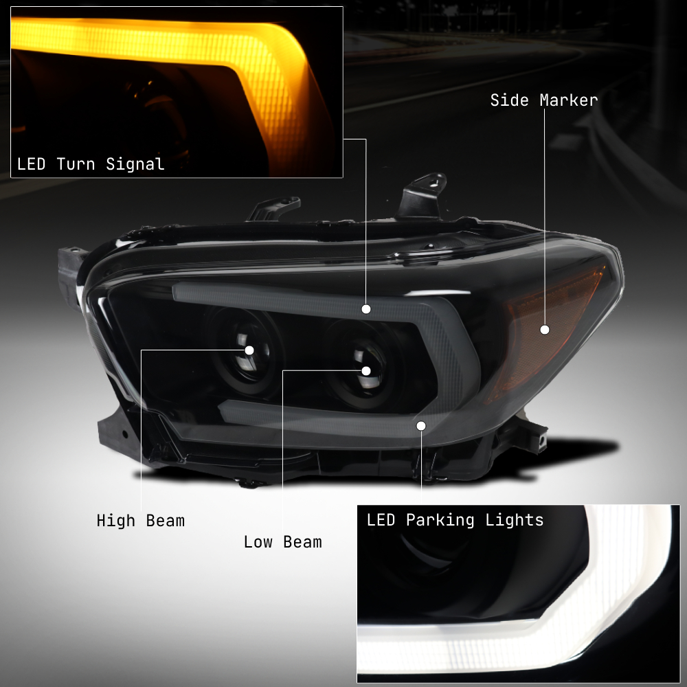 For 2016-2022 Toyota Tacoma Limited | TRD LED DRL Sequential Projector Headlights w/6.25" Blue LED DRL - Black/Smoke