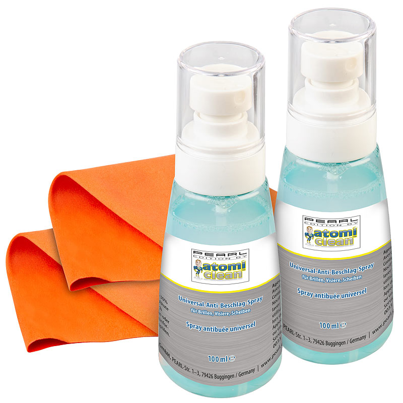 - 2er-Set Anti-Beschlag-Sprays inklusive 2 Mikrofasertüchern und deutscher Anleitung