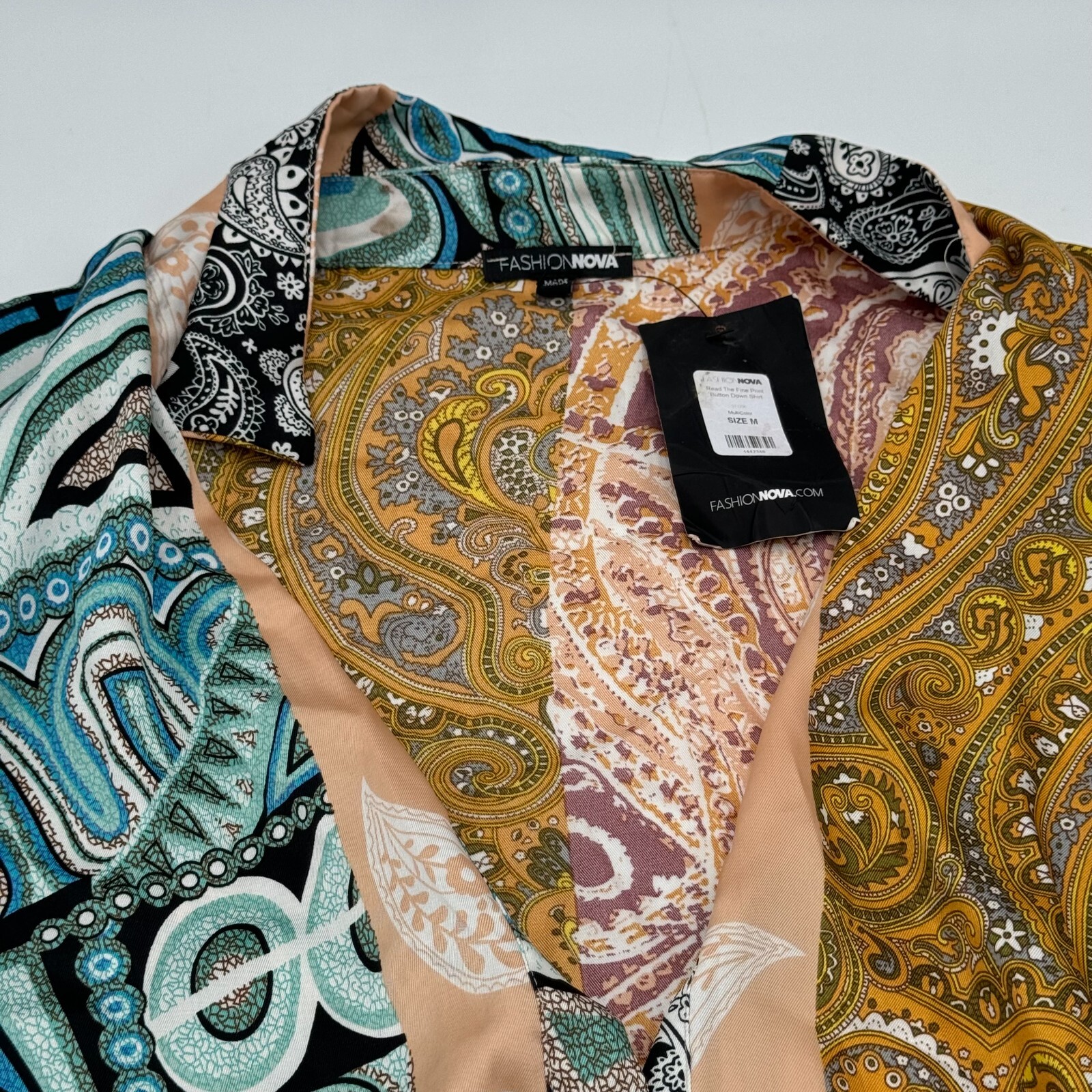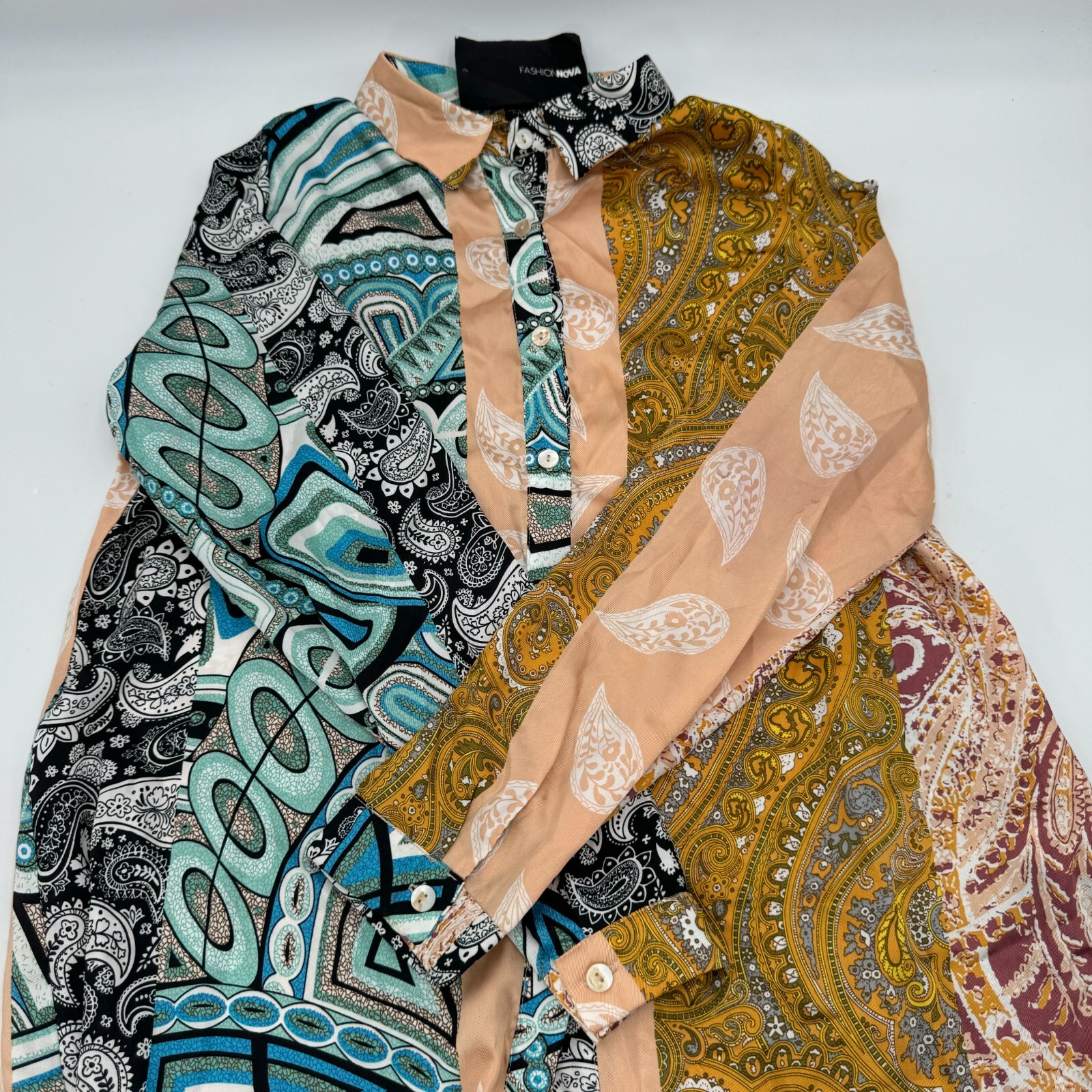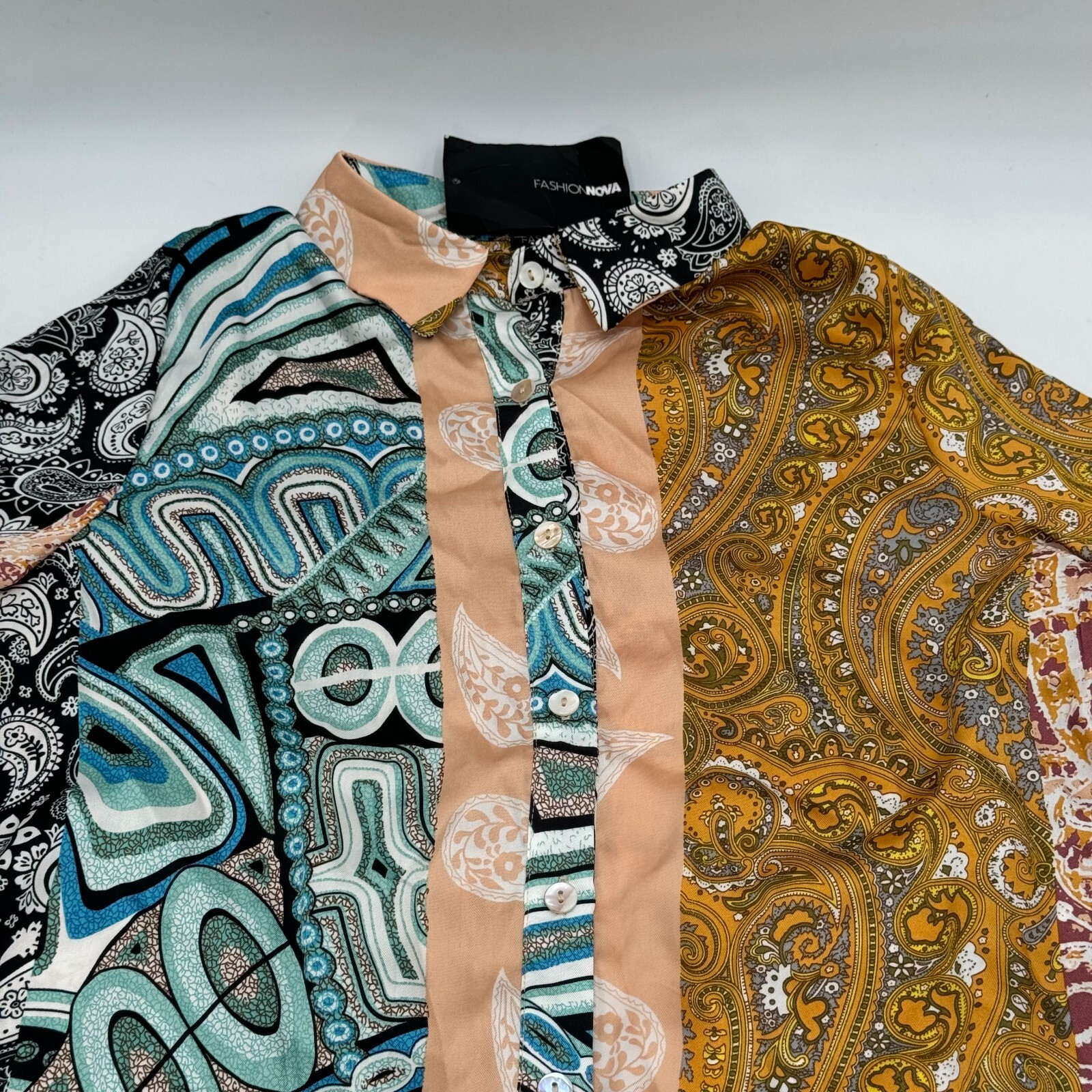 Add a pop of color to your wardrobe with this unique Fashion Nova shirt.