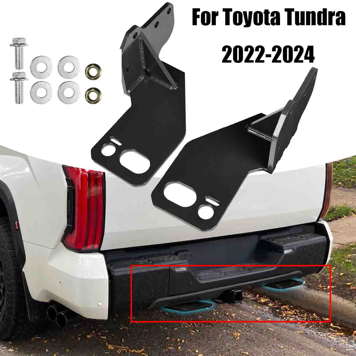 Fitment:For Toyota Tundra 2022-2024 Condition 100% Brand New Material:High Quality Carbon Steel. Finish:Painted Coated,Which is Prevents rust and corrosion resistant. Installation instructions not included. Color:Black Specification: 【Perfect Fitment】The Rear Recovery Tow Points fit for Toyota Tundra 2022-2024. The size of the tow point is customized and designed according to the original car, which fits perfectly with the original car. 【High Quality Material】The Recovery Tow Points are made of high strength steel material. The surface is coated, it is Anti-rust, resistant to damage from water and other corrosion threats, and durable enough to last a long time. Tow Points helps pull out vehicles stuck in mud or deep snow. Sufficient support can minimize swinging and vibration, thereby minimizing damage to the vehicle. 【Function】 The Rear Recovery Points are typically used to attach and haul utility trailers, boat trailers, campers, snowmobile or haulers and more. it;s achieve more adventure by utilizing the receiver tube of your hitch for a hitch-mounted bike rack or cargo carrier, etc. 【Easy Installation】The Recovery Tow Points is easy to install. No modification or drilling is required to install the bracket. Direct bolt on installation. It can be directly installed on the original hole position of the car. Just need to spend some time installing.Installation instructions not included. 【Package Included】The Tow Point Kit Includes all mounting hardware. They can also be used as alternative anchor points for your trailer safety chains. Always cross the safety chains underneath the hitch and coupler, make sure to leave enough slack for turning,and have a Working Load Limit of 13,000 lbs each. Package Included: 2pcs Recovery Tow Points