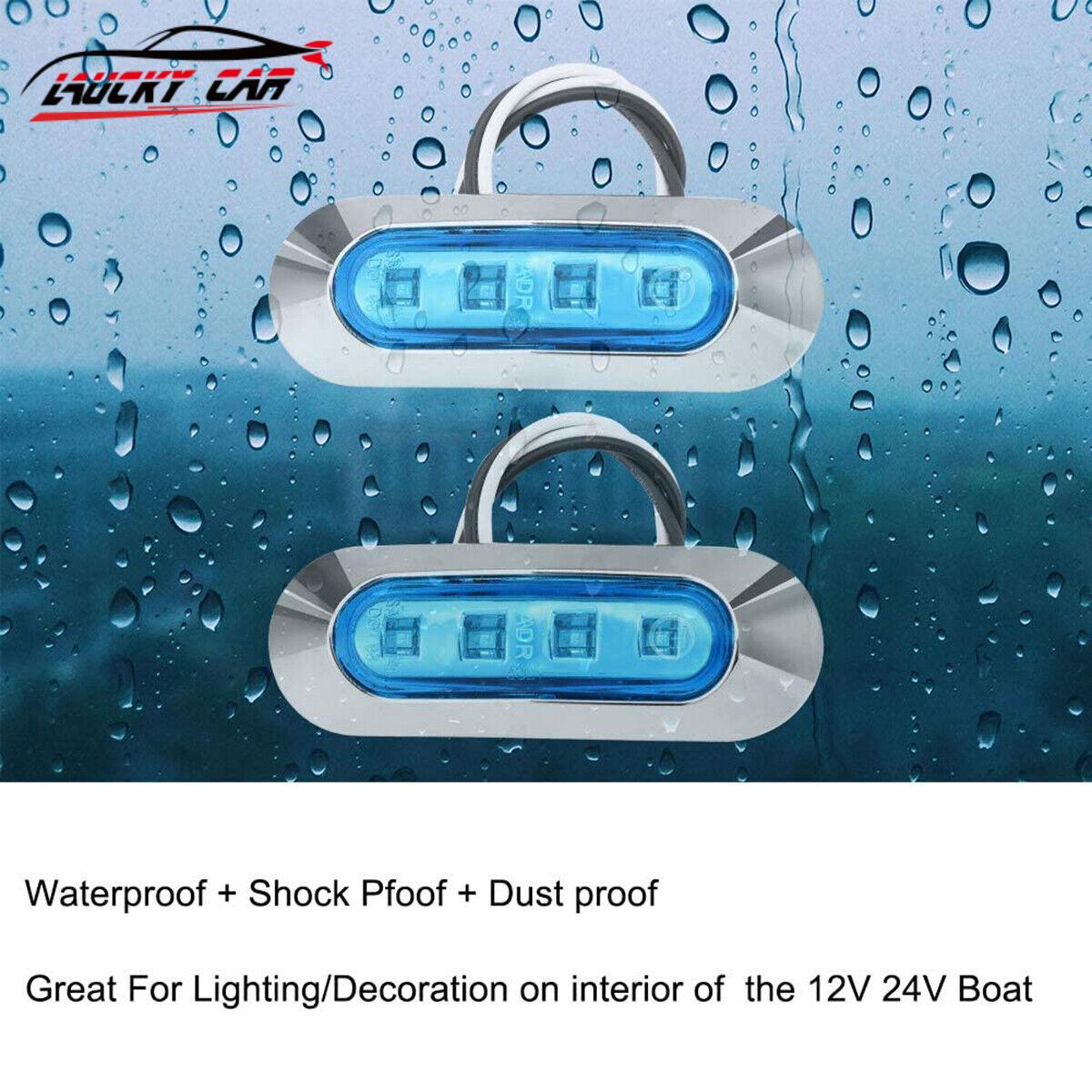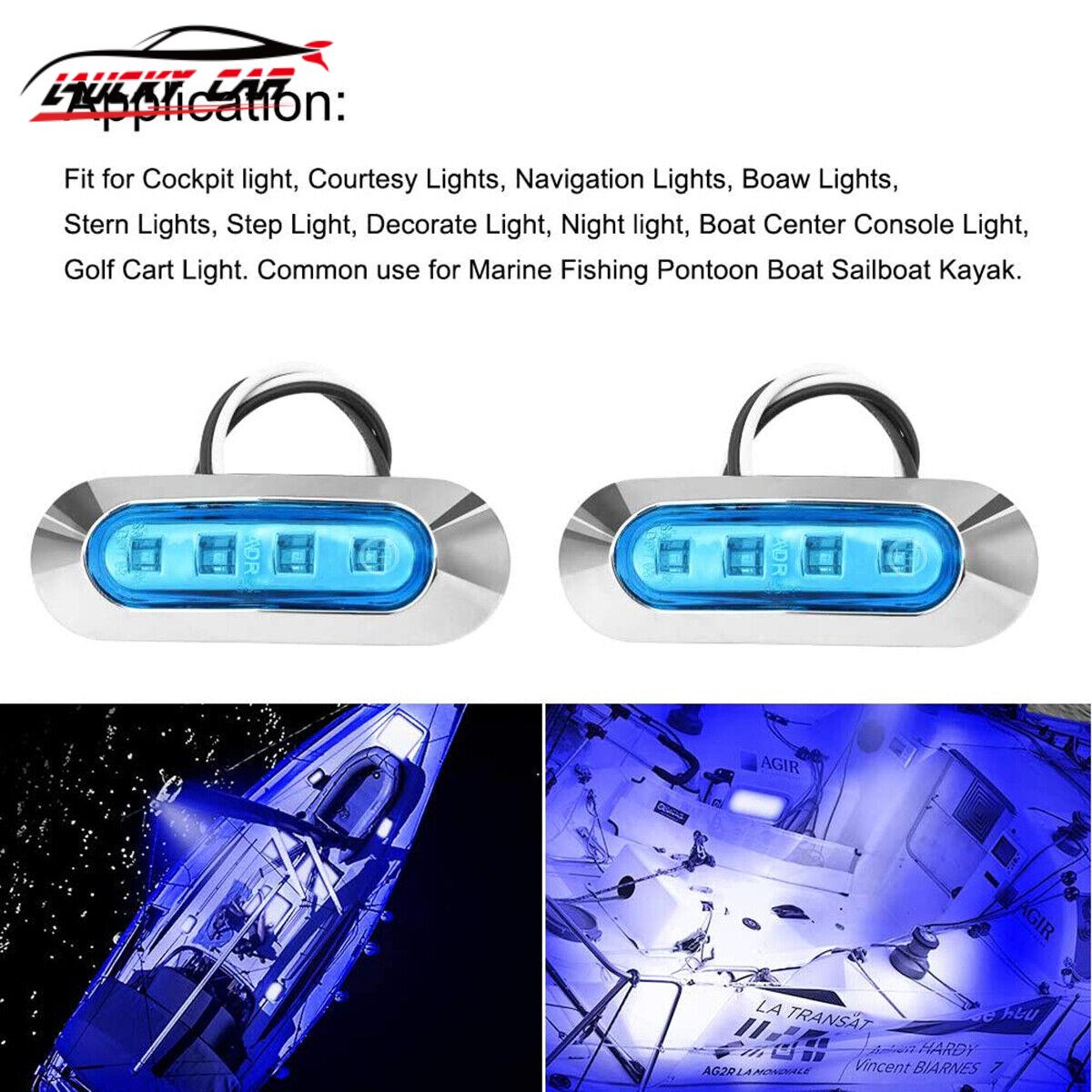 4x Blue 12V -24V Marine Boat LED Courtesy Lights Cabin Deck Walkway Stair Light