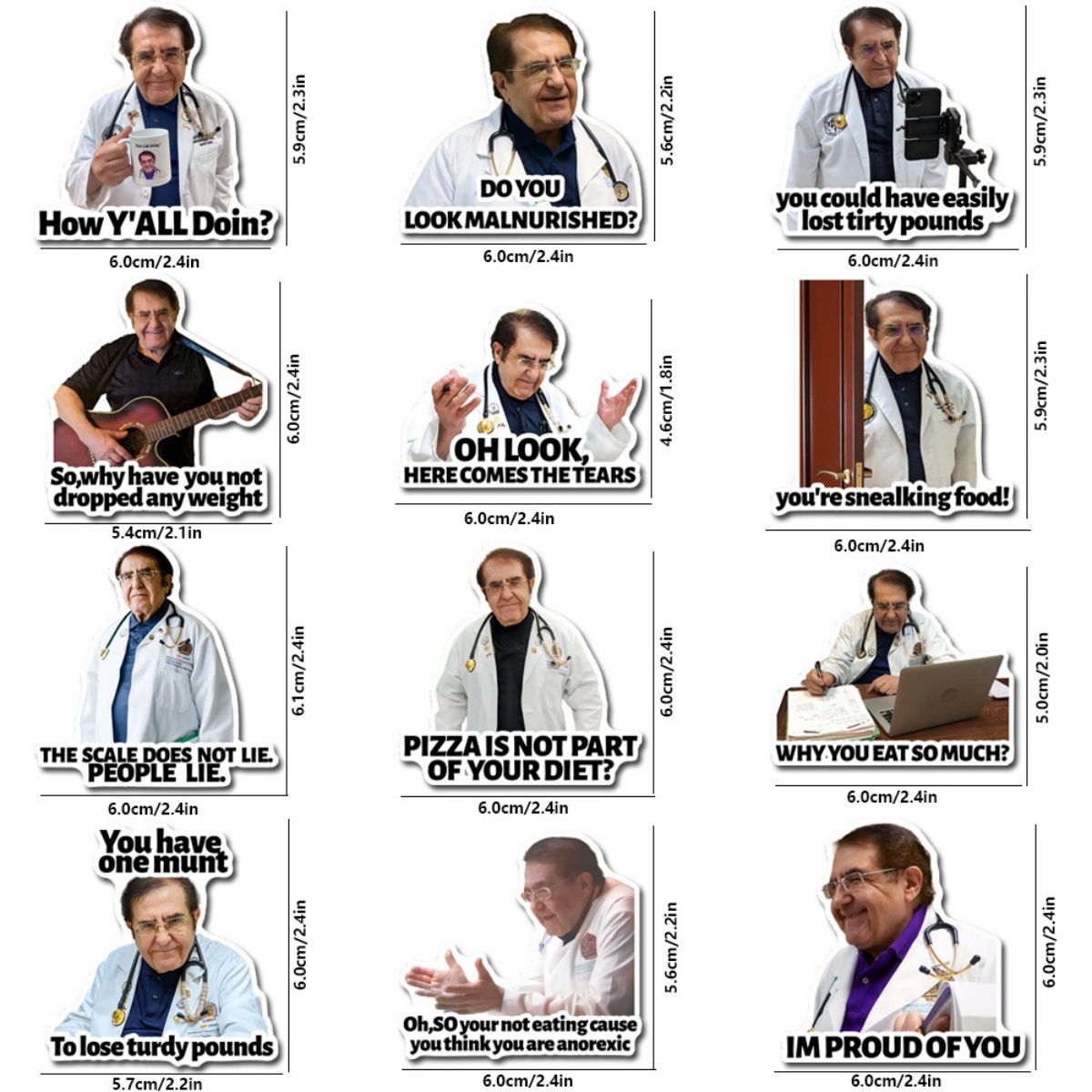 12 PCS 600 lb Life Dr. Nowzaradan Quotes Graphic Fridge Flexible Magnets Sticker