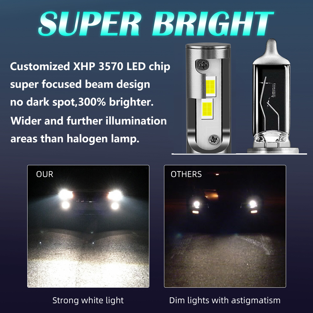 6)Wider and further illumination areas than halogen lamp,300% brighter than traditional halogen lamps.