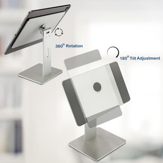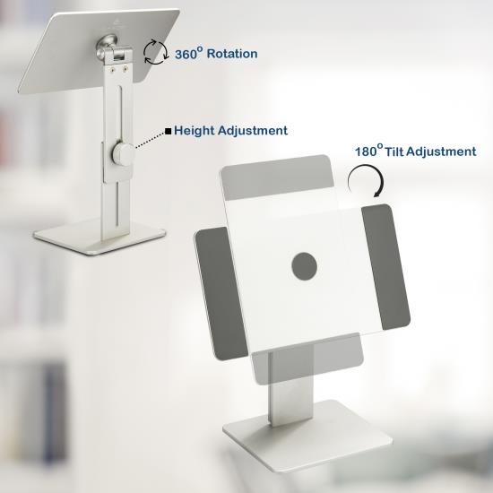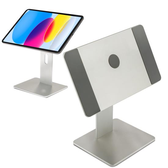 This tablet stand is available in 4 variations like: You can choose Height adjustable or not and fits for 11" or 12.9".