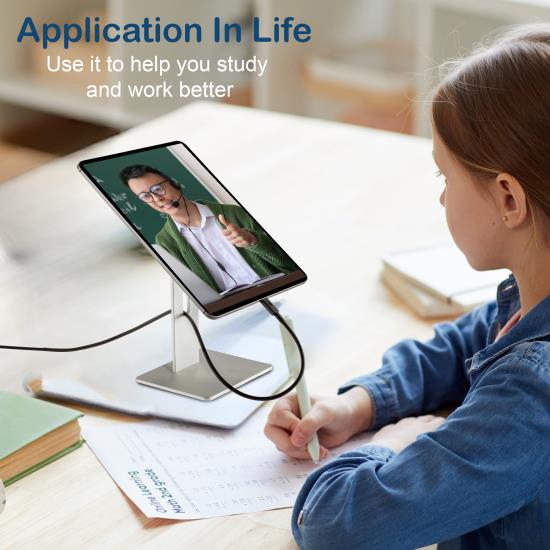 Elevate your iPad with the Gabor Magnetic Tablet Stand and easily create a stylish-desktop setup. The stand is designed with strong magnets so you can quickly attach and remove the iPad while rubber padding helps prevent metal-to-metal contact. Comfortably draw on your tablet’s screen or use the tablet hands-free, like a workstation, with the addition of a keyboard and mouse. A bidirectional screen position allows you to rotate 360° and tilt 180° to adjust it to the ideal viewing angle. Aluminum construction and the cable passthrough provide a sleek and stylish iPad stand that’s sure to look great and organize any home or office workspace.