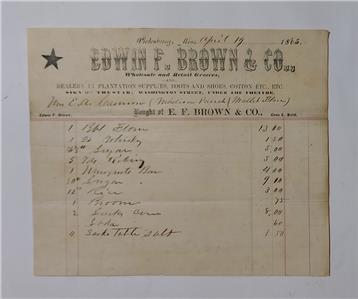 Decorative General Store invoice from the Edwin F.Brown & Company Wholesale and Retail Grocers to Mrs. E.A.Cameron of Madison Parish,Louisanna.