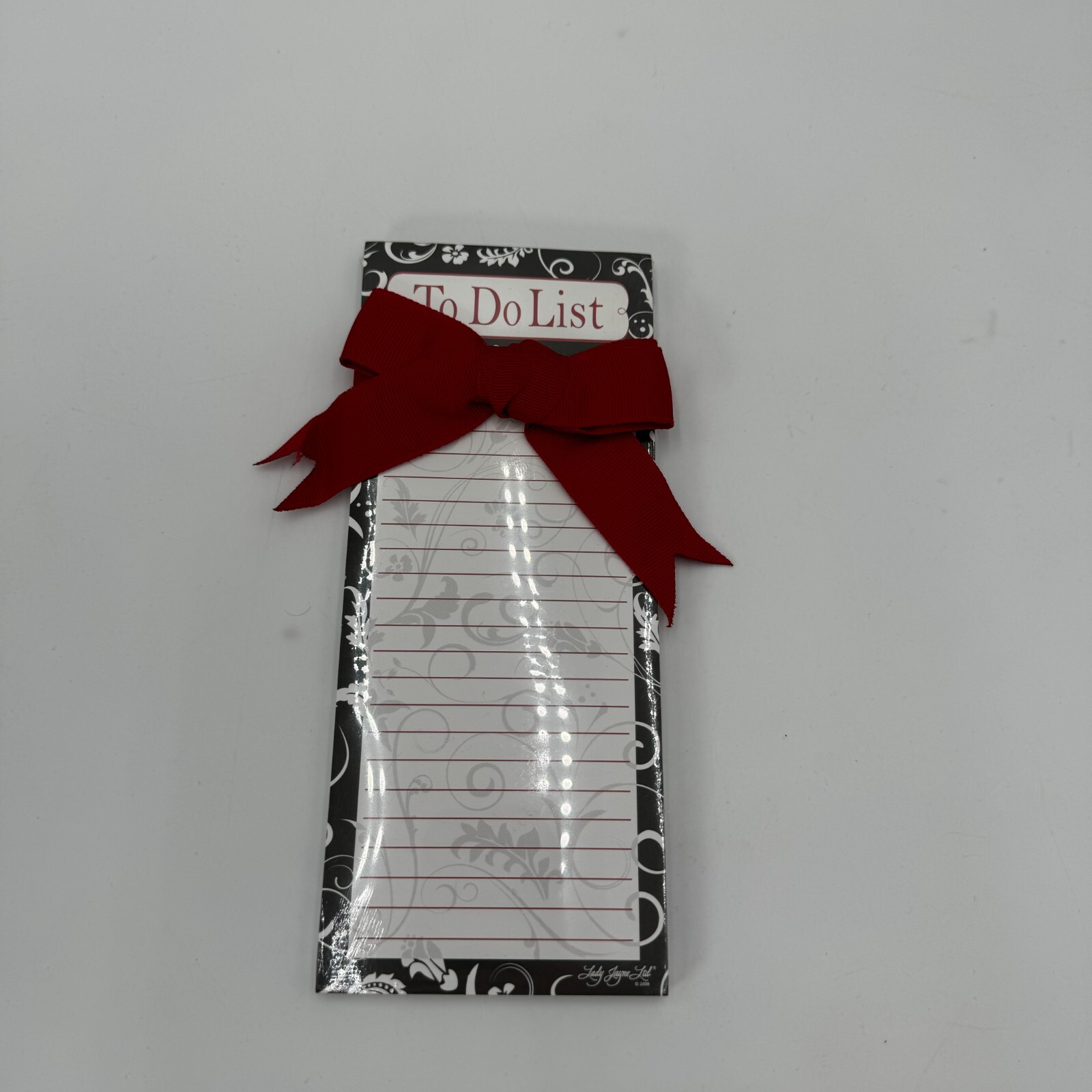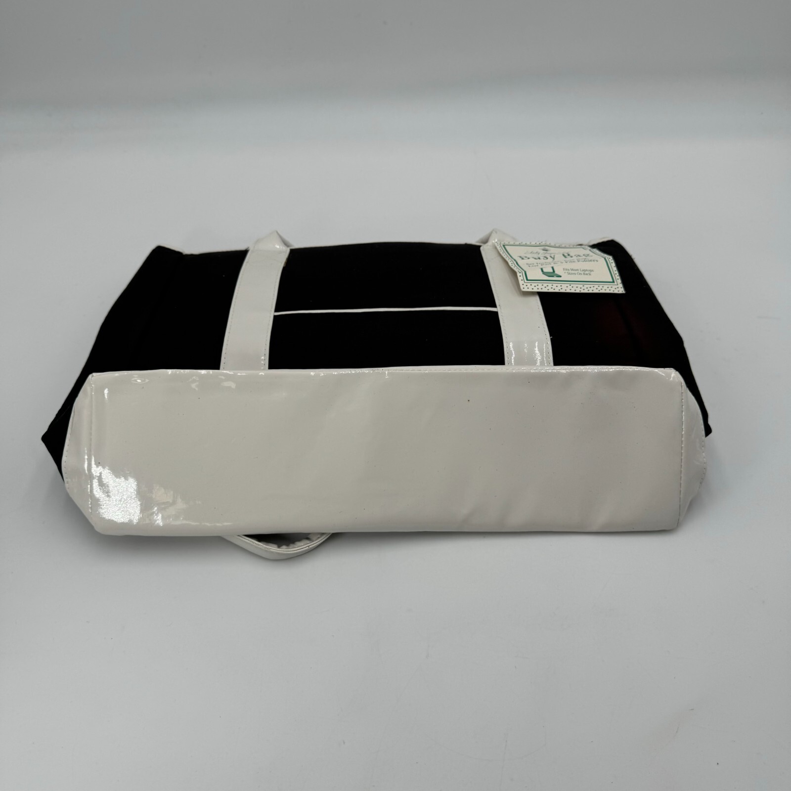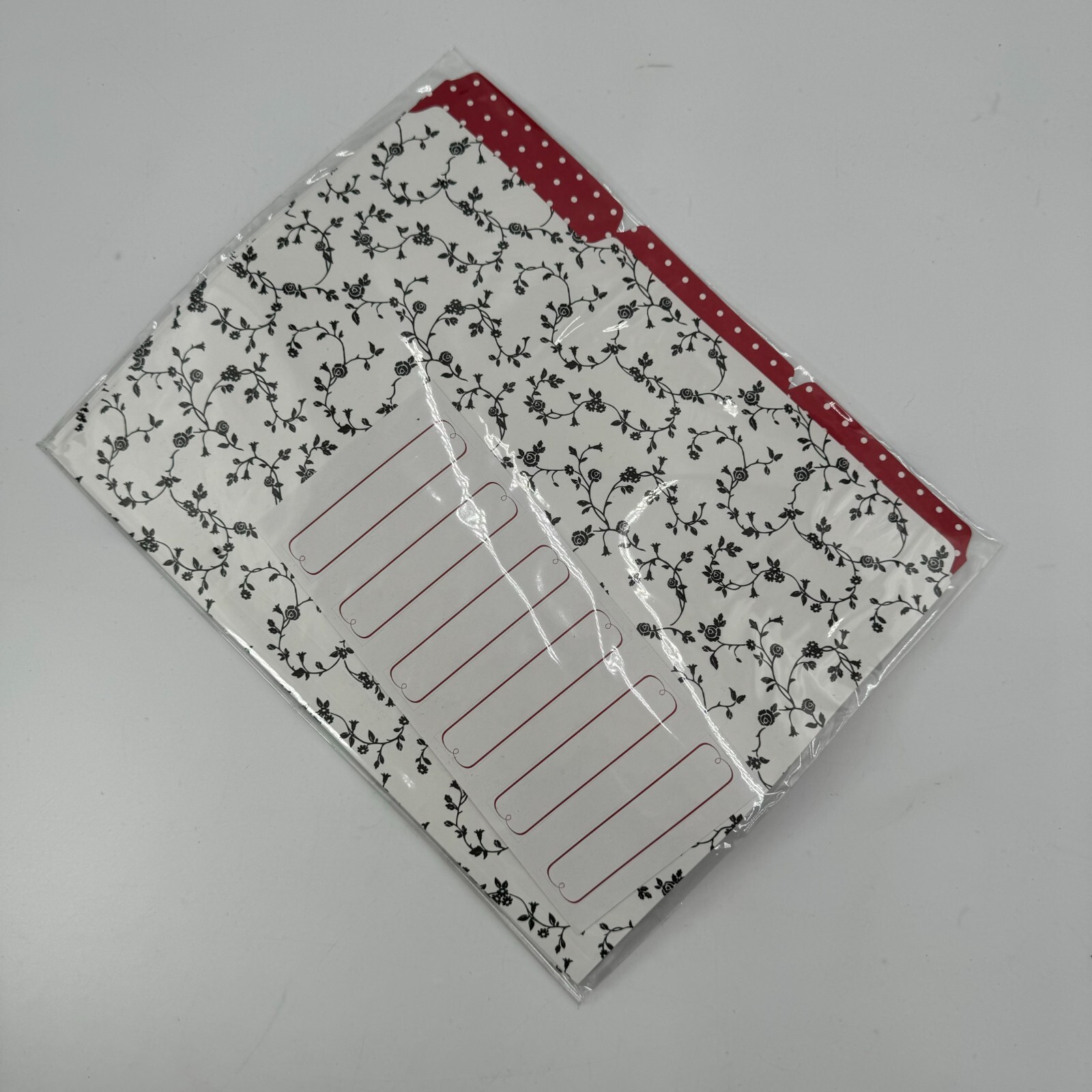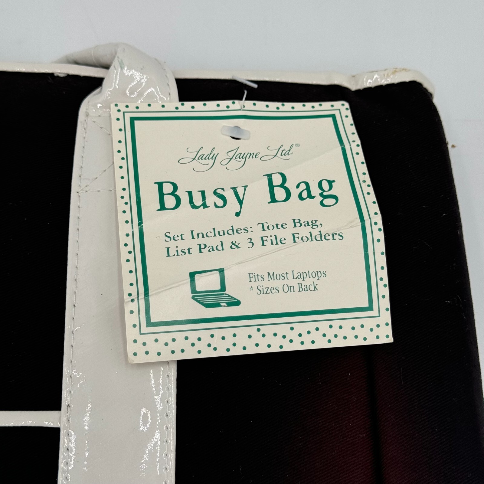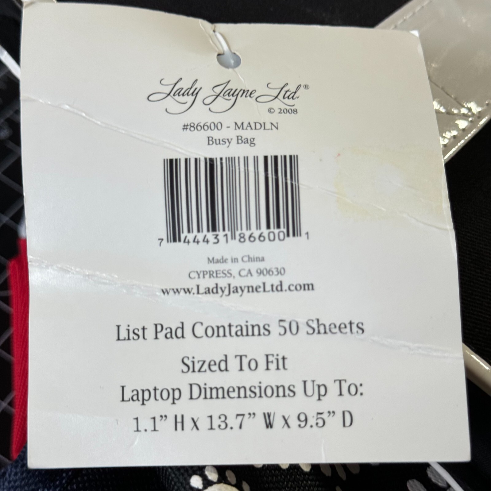 The set includes a black tote bag with a colorblock pattern, rectangle shape, and double handles in white. It also comes with a list pad and three file folders, making it easy to stay organized on the go.