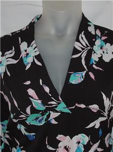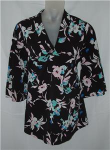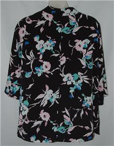 This shirt is size 18/20 and made by Lane Bryant. It measures 27" across at the bust and it is approximately 30 1/2" in length from the back of the neck with 5 1/2" vent slits on the sides. It is made with 100% polyester and machine washable. It is very gently worn, in excellent condition, no rips or stains, might have some wrinkling with shipping. Nice shirt.