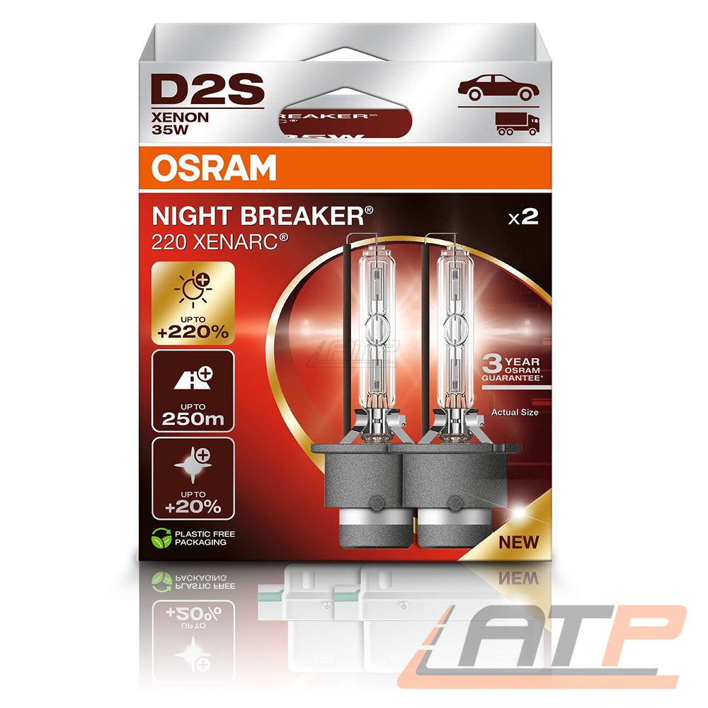 OSRAM XENARC® NIGHT BREAKER® LASER D2S: Die leistungsstärkste Xenonlampe von OSRAM. Lernen Sie die hellsten Xenon-Scheinwerferlampen von OSRAM kennen, mit dem neuen XENARC® NIGHT BREAKER® LASER. Mit bis zu 220% mehr Helligkeit, bis zu 250 m langem Lichtkegel und bis zu 20% weißerem Licht (im Vergleich zu den gesetzlichen Mindestanforderungen) bieten die leistungsstarken HID-Lampen deutlich mehr Sicht auf der Straße. Mehr Licht ermöglicht es, weiter zu sehen und deshalb schneller zu reagieren. Mit dem hochwertigen OSRAM Xenonlicht verwandeln Sie die Nacht zum Tag. Besonders auf dunklen Straßen und bei ungünstigen Lichtverhältnissen sorgt die XENARC® NIGHT BREAKER® LASER für extrem helles und starkes Licht. Die Xenonlampen sind für alle Frontscheinwerferfunktionen verfügbar und entsprechen der ECE-Norm. Vertrauen Sie der Nummer eins – so wie viele internationale Automobilhersteller. OSRAM ist Weltmarktführer im Bereich Fahrzeuglampen. Jedes Jahr wird die Hälfte aller weltweit gefertigten Autos mit unseren Lichtquellen ausgestattet. Zu unseren Kunden zählen einige der größten internationalen Automobilunternehmen. Kurz gesagt: Mit OSRAM können Sie auf Lichtlösungen vertrauen, die immer höheren Sicherheitsanforderungen gerecht werden und mit höchsten OSRAM Qualitäts- und Leistungsstandards überzeugen.