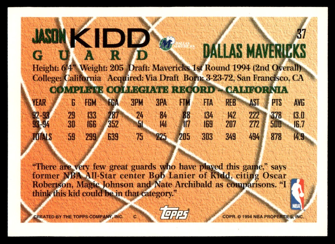 1994-95 Topps Jason Kidd Rookie Dallas Mavericks #37