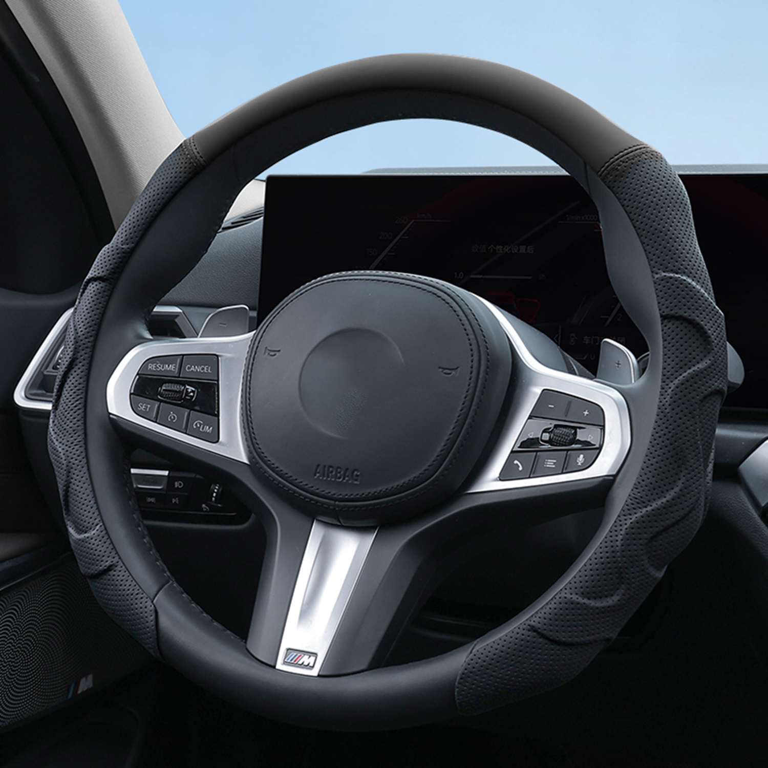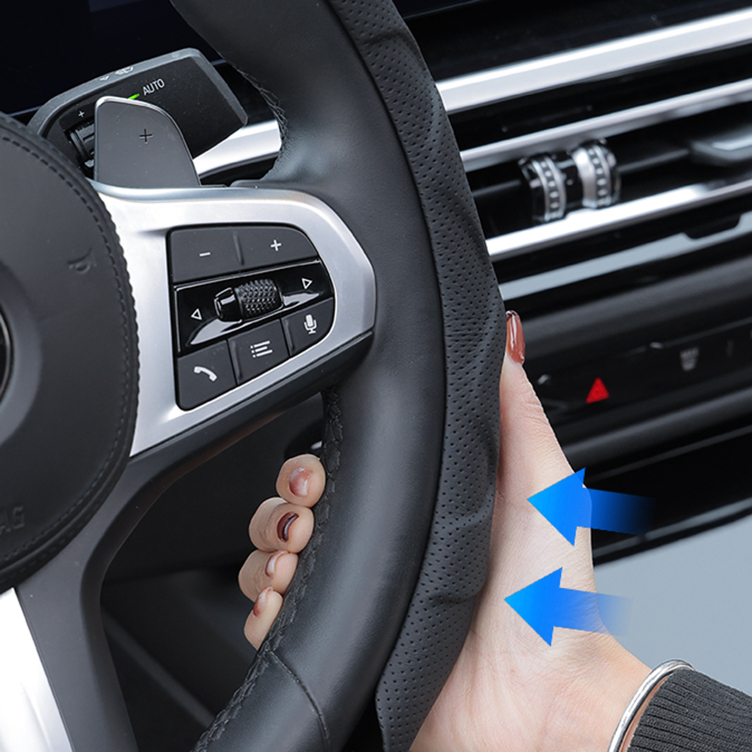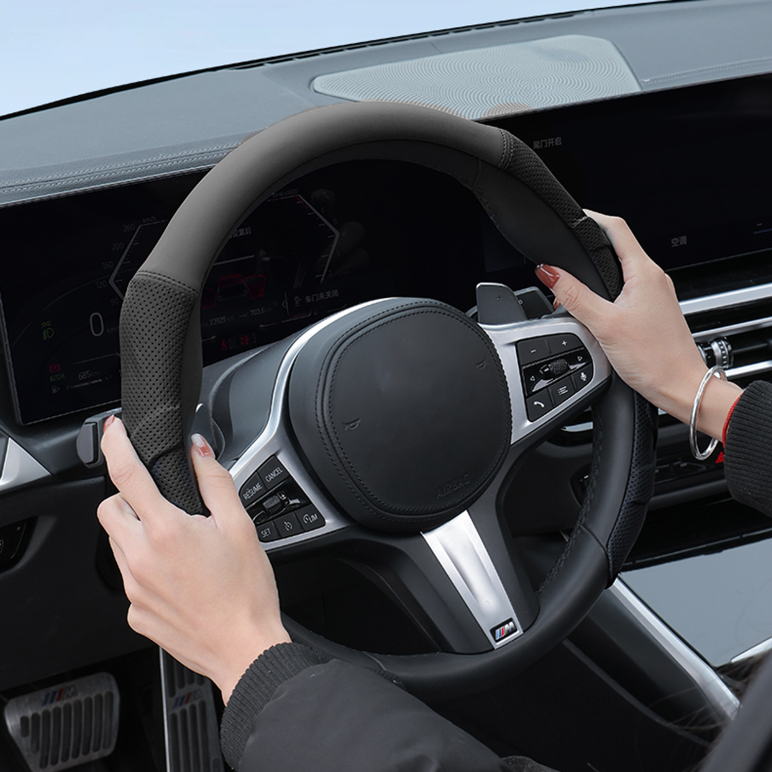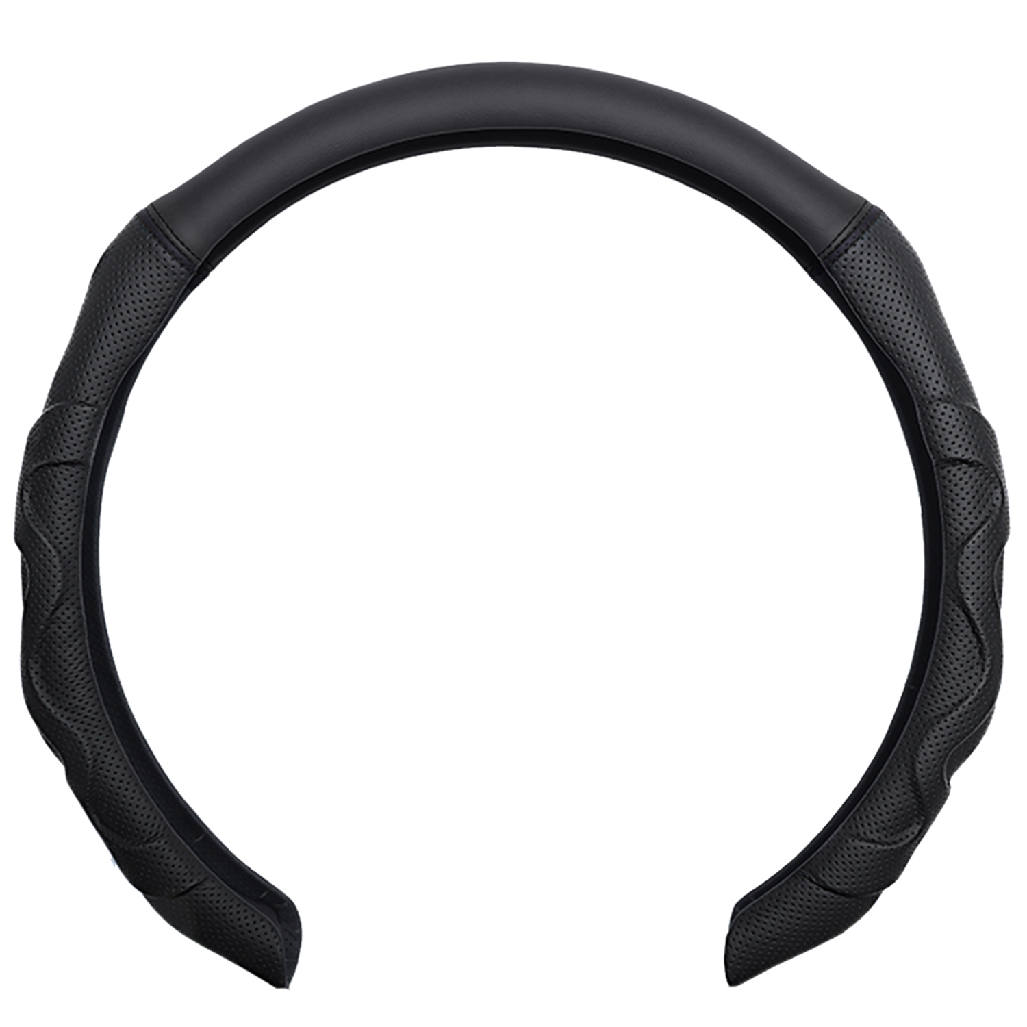 [Design and process] This luxurious black steering wheel protector is ergonomically designed with an integrated molding process and multiple