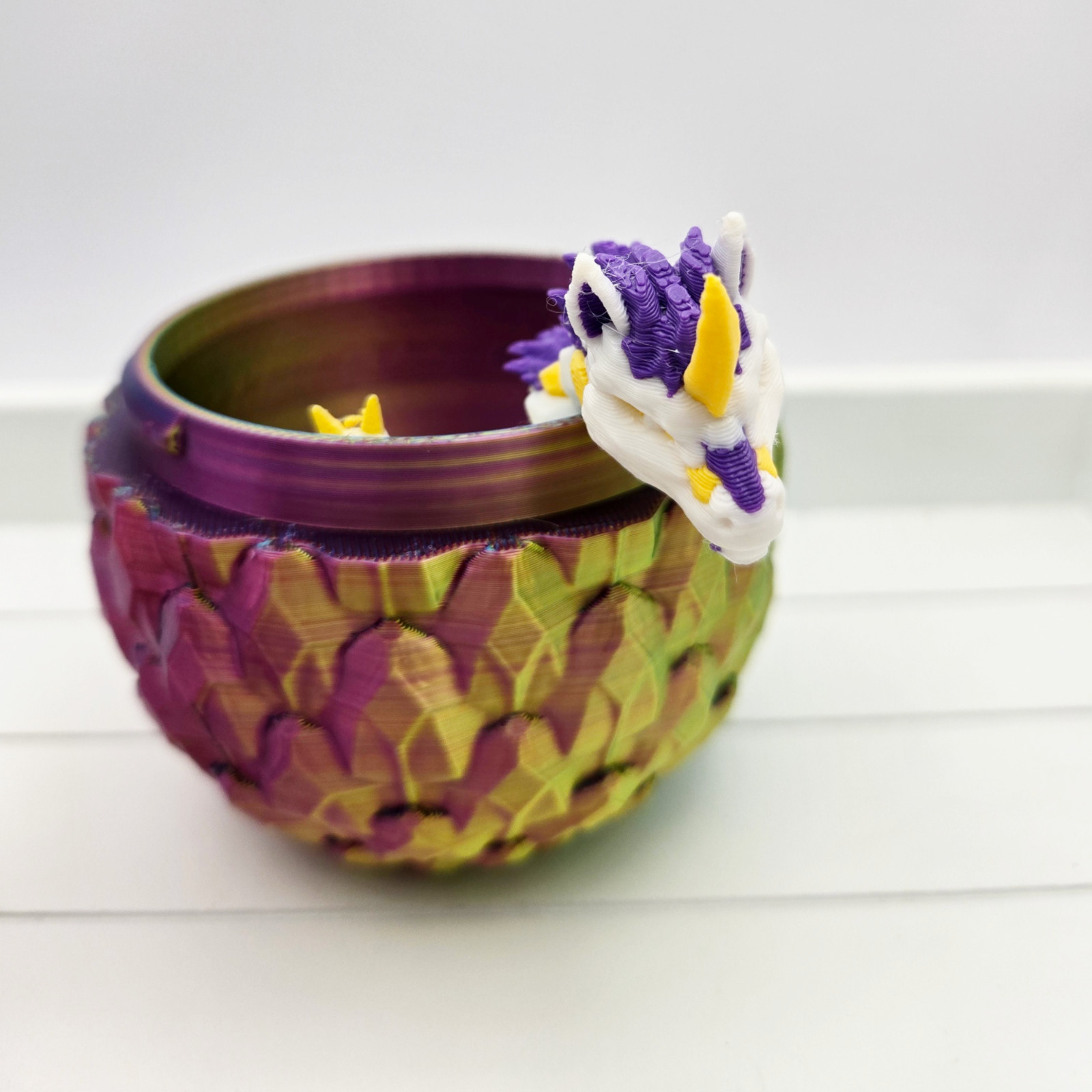 Transform your space into a mystical realm with this exquisite 3D Printed Unicorn Dragon and Dragon Scale Egg. Crafted with precision, this one-of-a-kind piece adds a unique touch to any room. Bring out your inner adventurer and create a captivating atmosphere with this stunning decor.