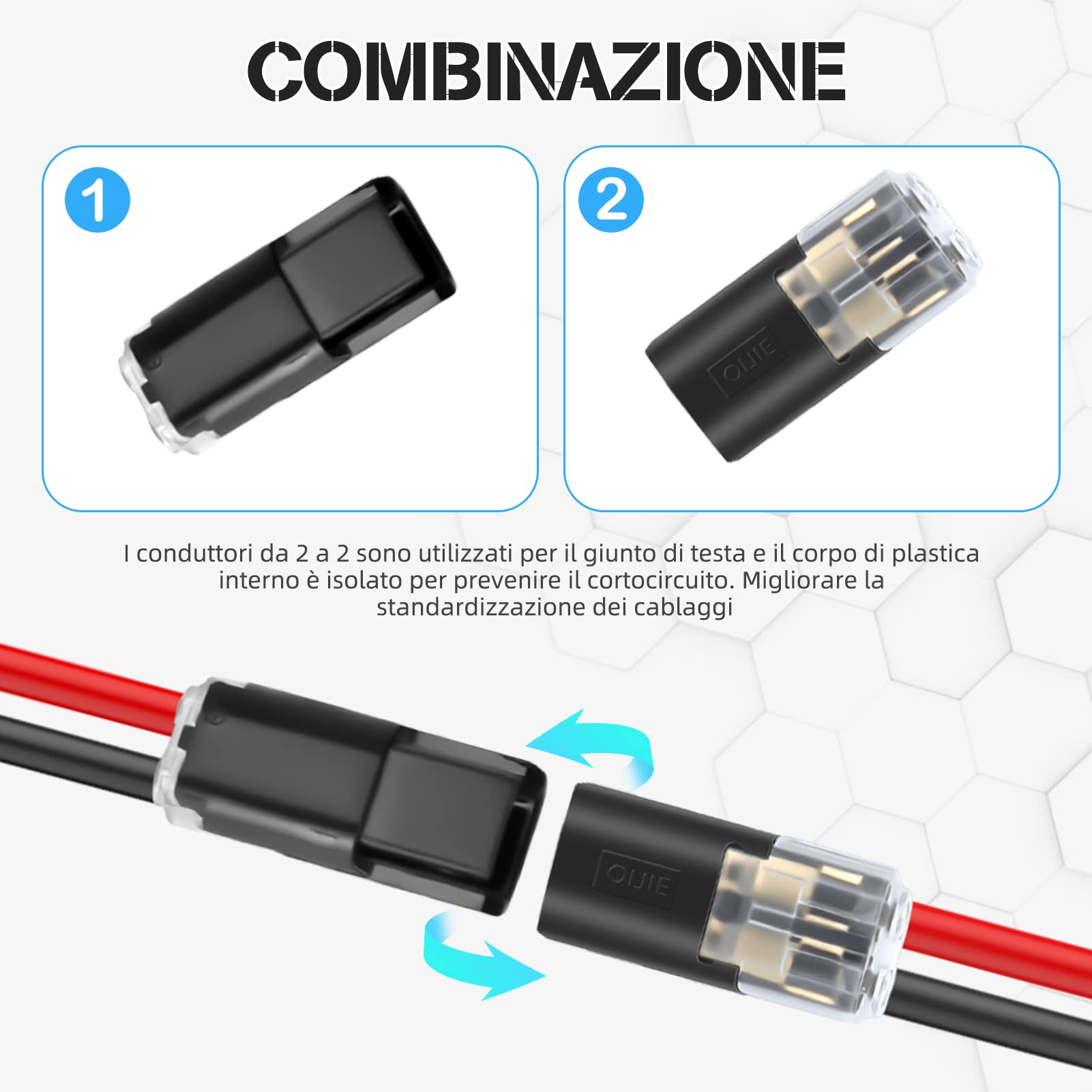 connettore del cavo a 2 pin. Collega rapidamente i cavi senza spellarli.
