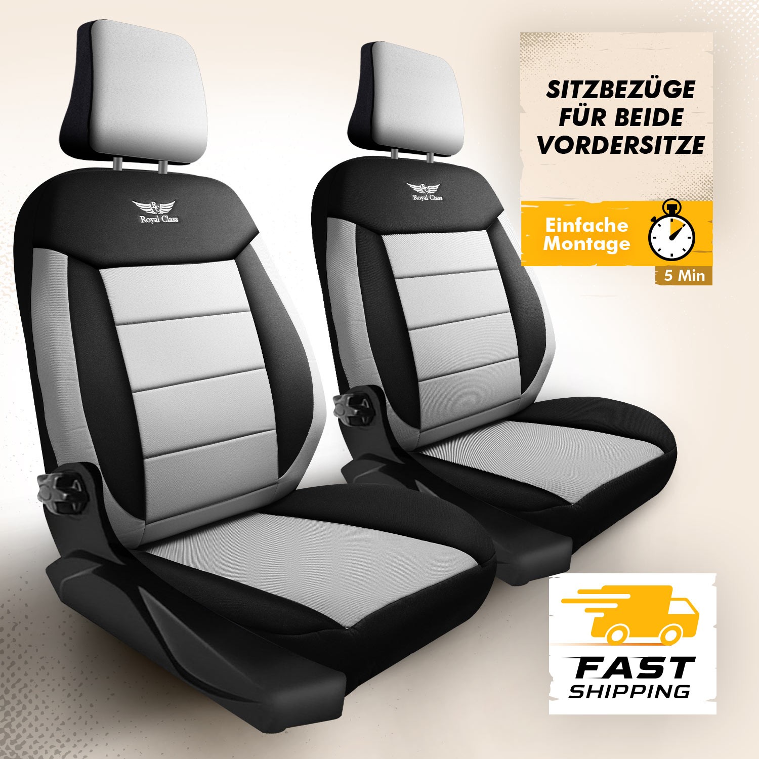 2x Einzelsitzbezüge (2 teilig, Fahrer & Beifahrer) inkl. Kopfstützenüberzug