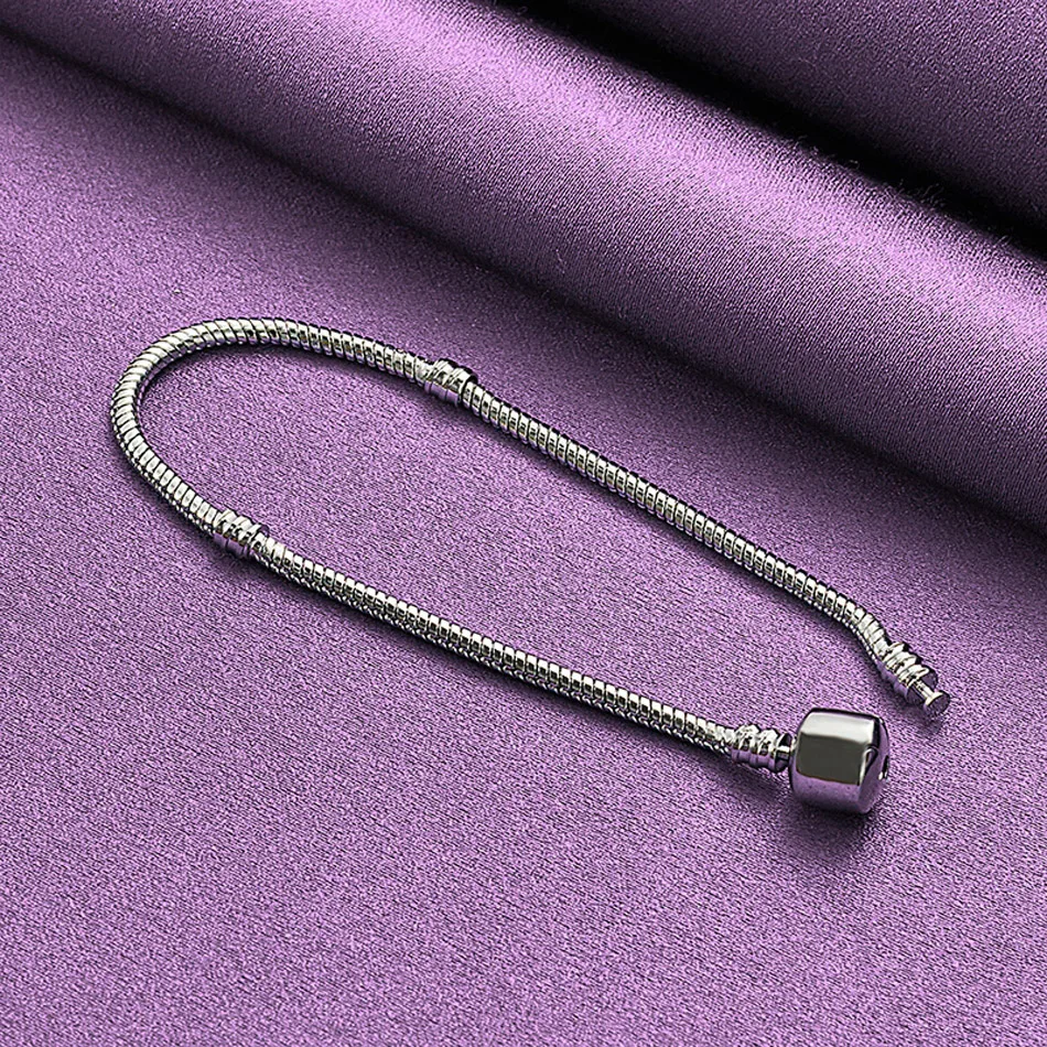 CHSHINE 925 Sterling Silver Snake Chain Bracelet For Women Wedding Party Fashion Charm Jewelry Hat Buckle Chain 20CM 8inches