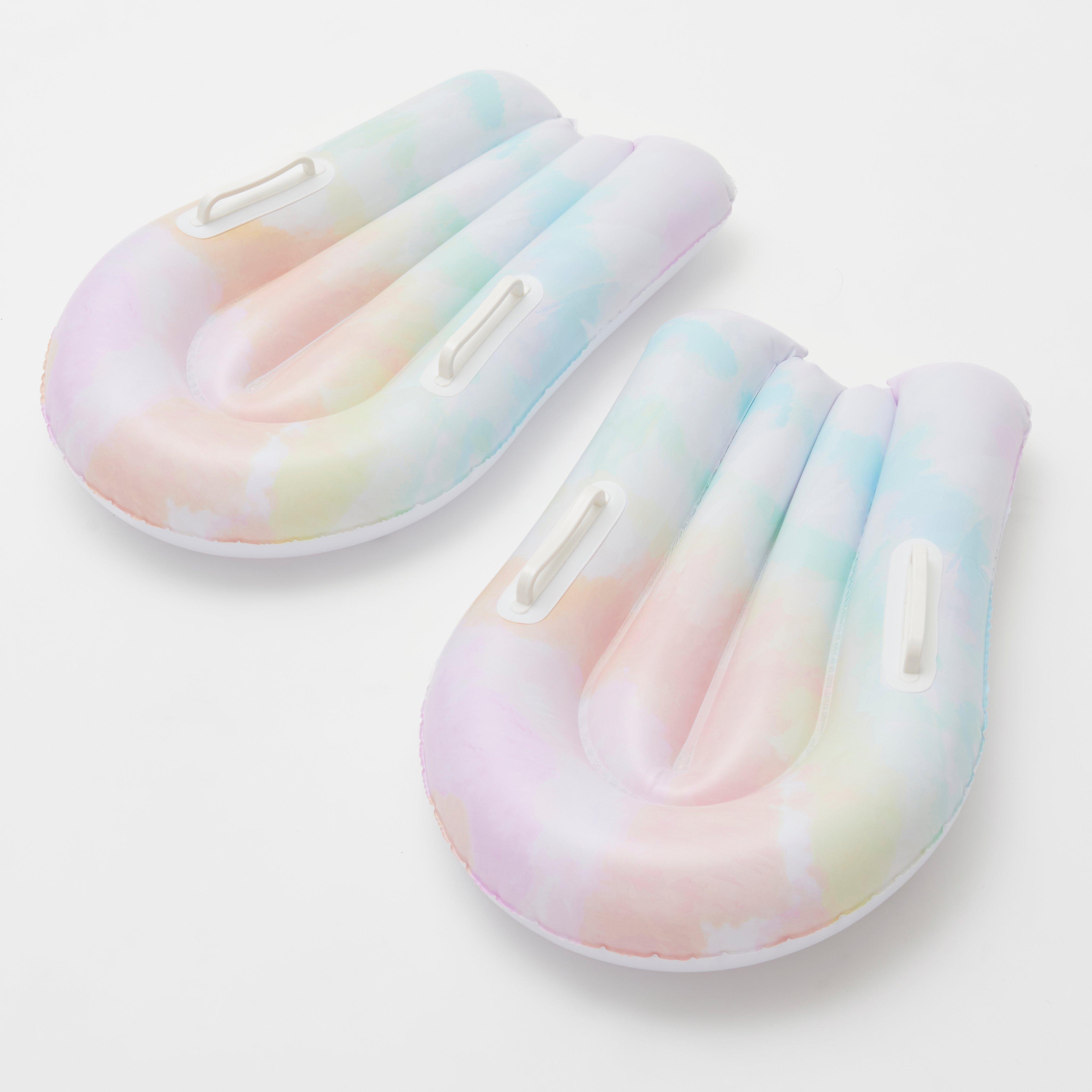 - Includes x2 inflatable body boards for a smooth slide. Includes repair patch in case of punctures