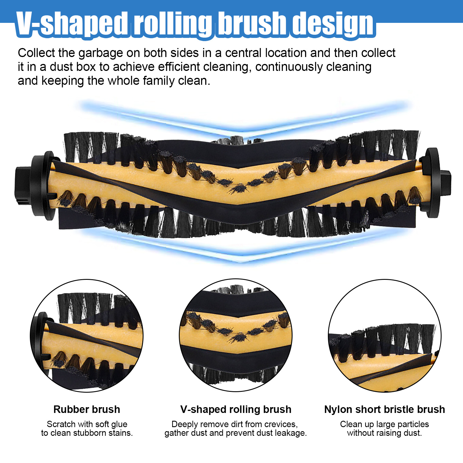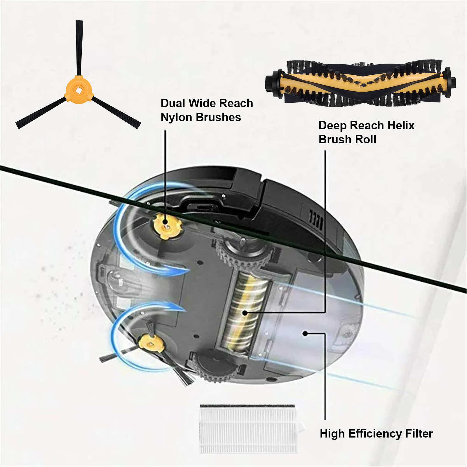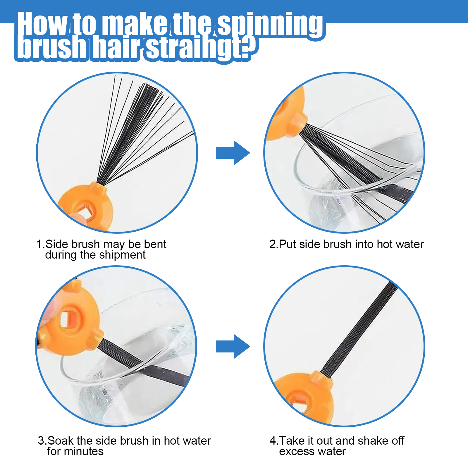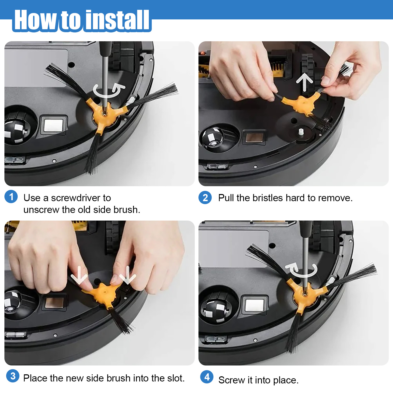-Quality above all else, no more worrying about your sweeper getting stuck in hair with our powerful and quiet roller brushes and provided cleaning tools. Our side brush bristles are made of high quality rubber and are designed to outlast the competition. If you receive a bent or curled side brush due to rough transportation, to recover it just need to soak in warm water for 15 seconds