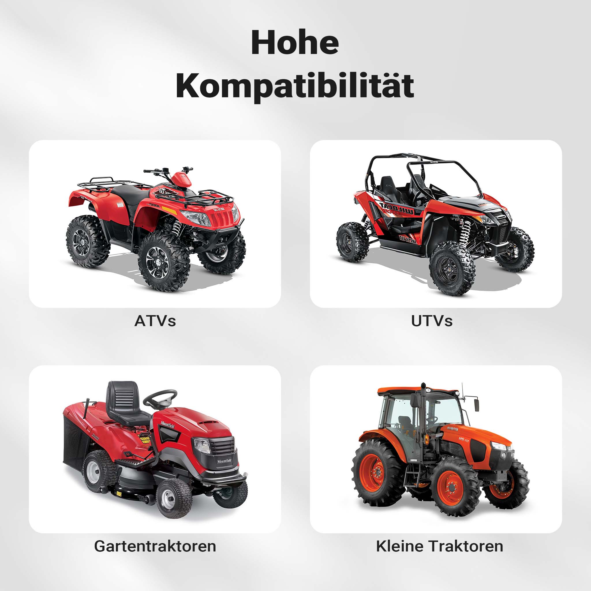• Kompatibel mit ATVs, UTVs u. Rasentraktoren