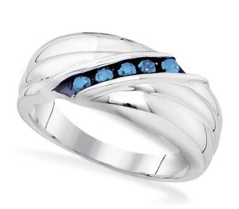Great price and style on this Men's .925 Sterling Silver band. A total of .33 carats of channel-set bright, round-cut blue diamonds are set at the center of the wide band to deliver a very eye-catching appearance. Blue diamonds are set at a slight angle giving interest to the design. Makes for a perfect wedding band or simply a versatile accessory. You will love the design and price on this one!