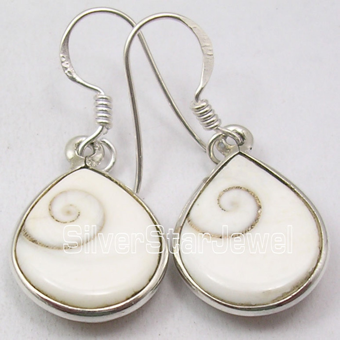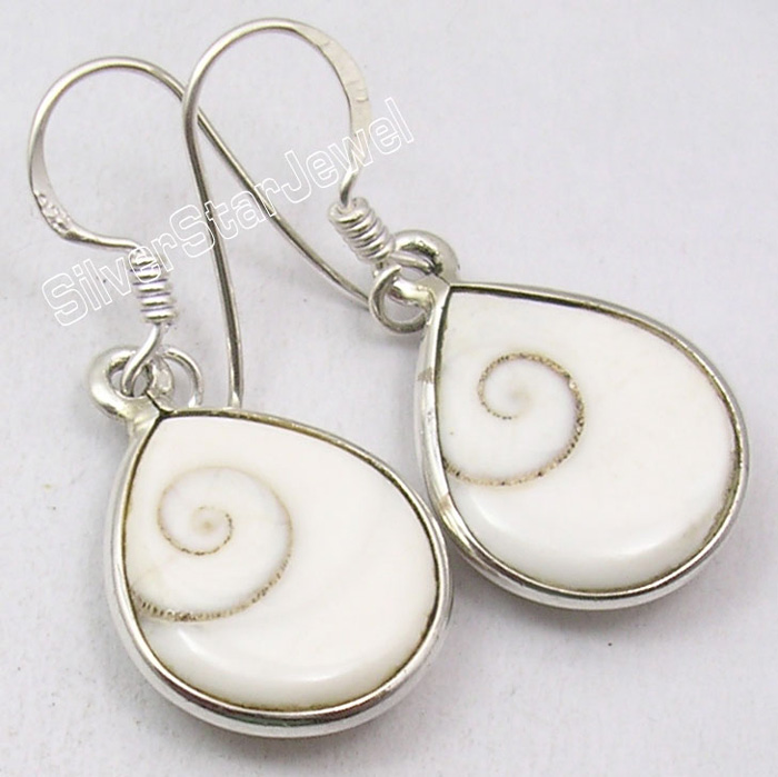 ON SALE CLEARANCE 925 Silver SHIVA EYE Shell BEAUTIFUL Dangle Earrings 1.3"