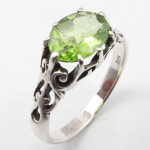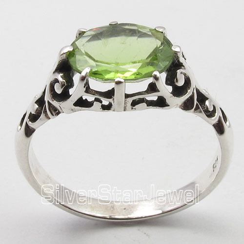 Offer Accepted 925 Solid Silver FACETED GREEN PERIDOT Cage Setting Ring Any Size