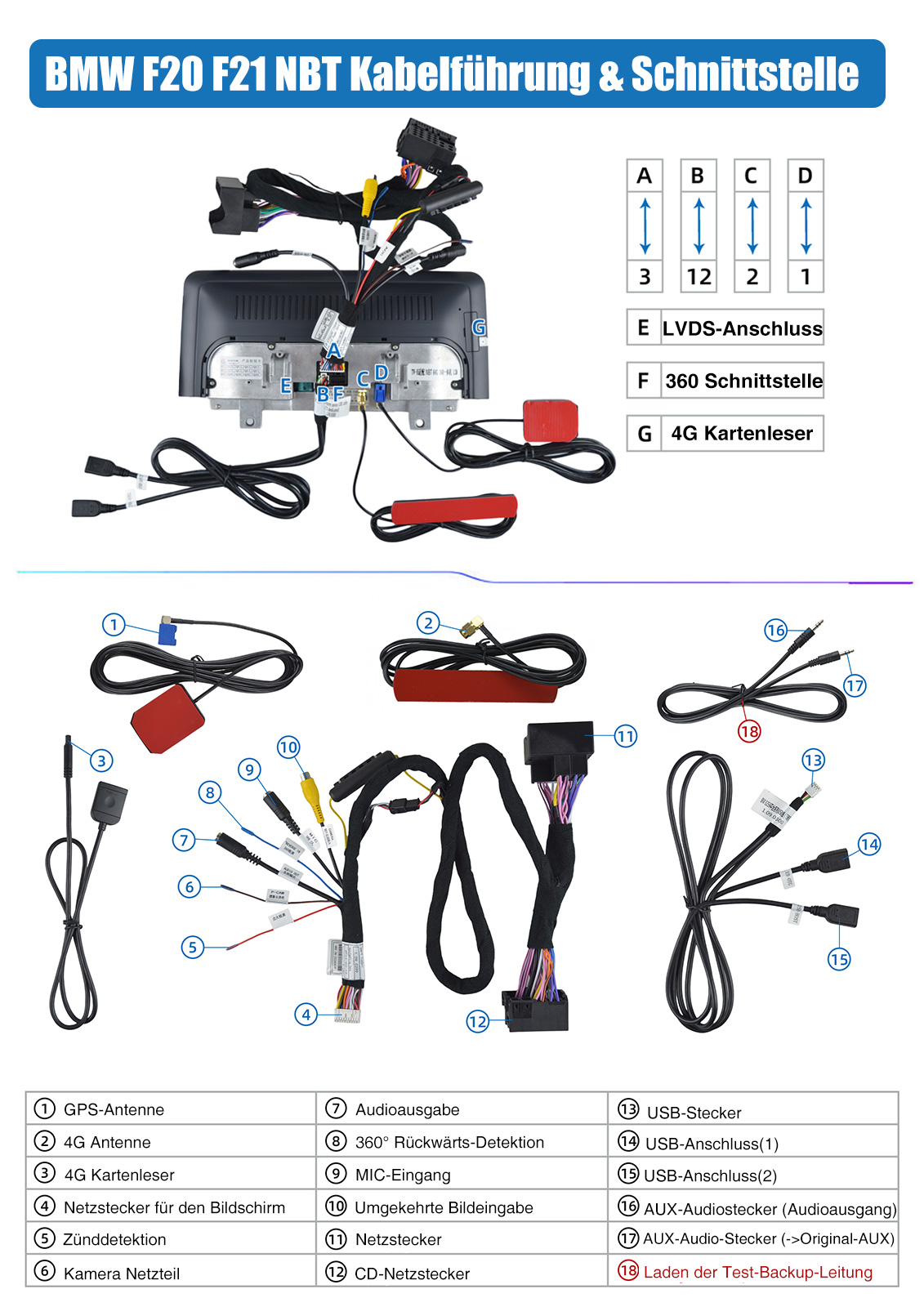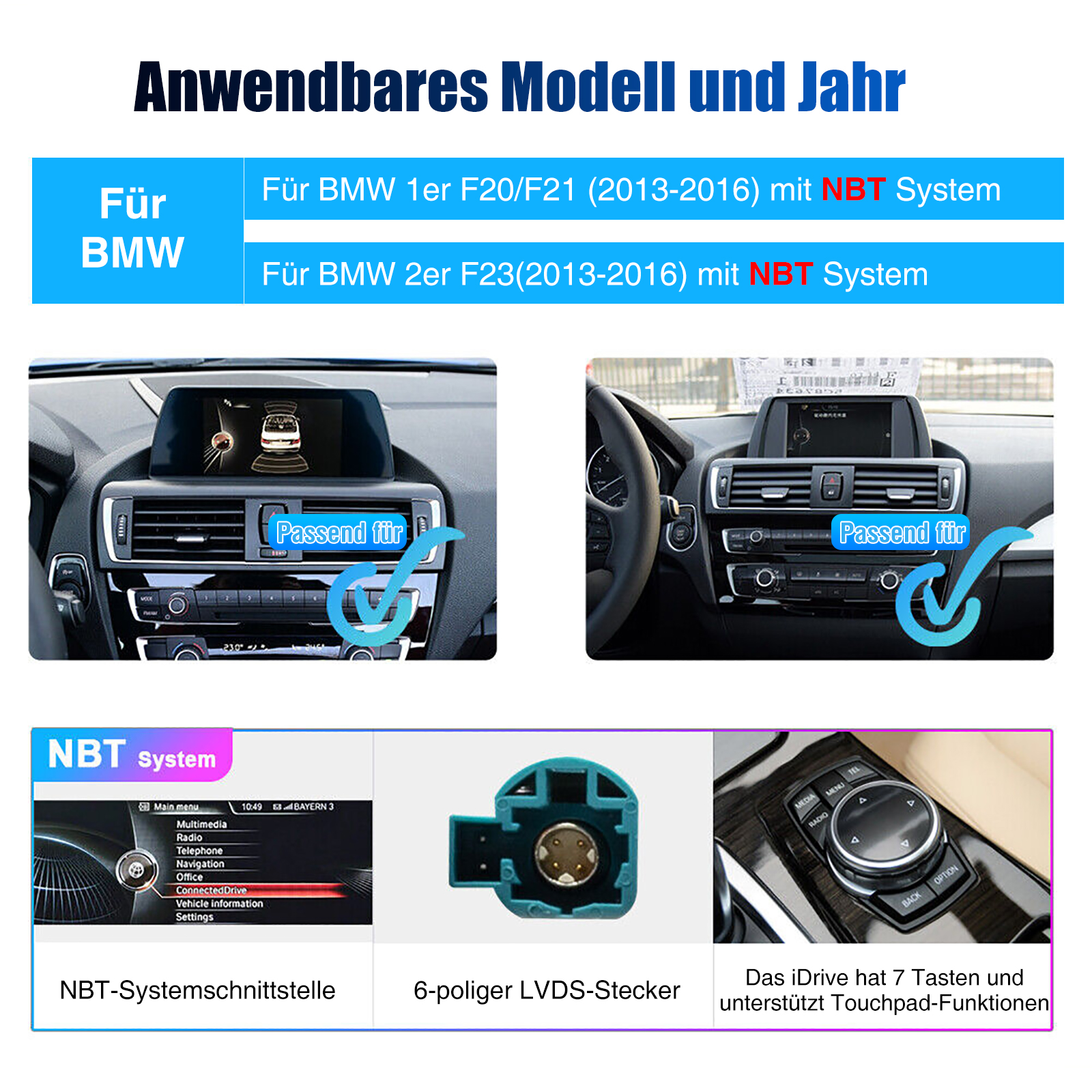 Für BMW 1er F20/F21 2013-2016 Original Auto mit NBT System(6-polige LVDS Anschluss QiDrive Paddle)