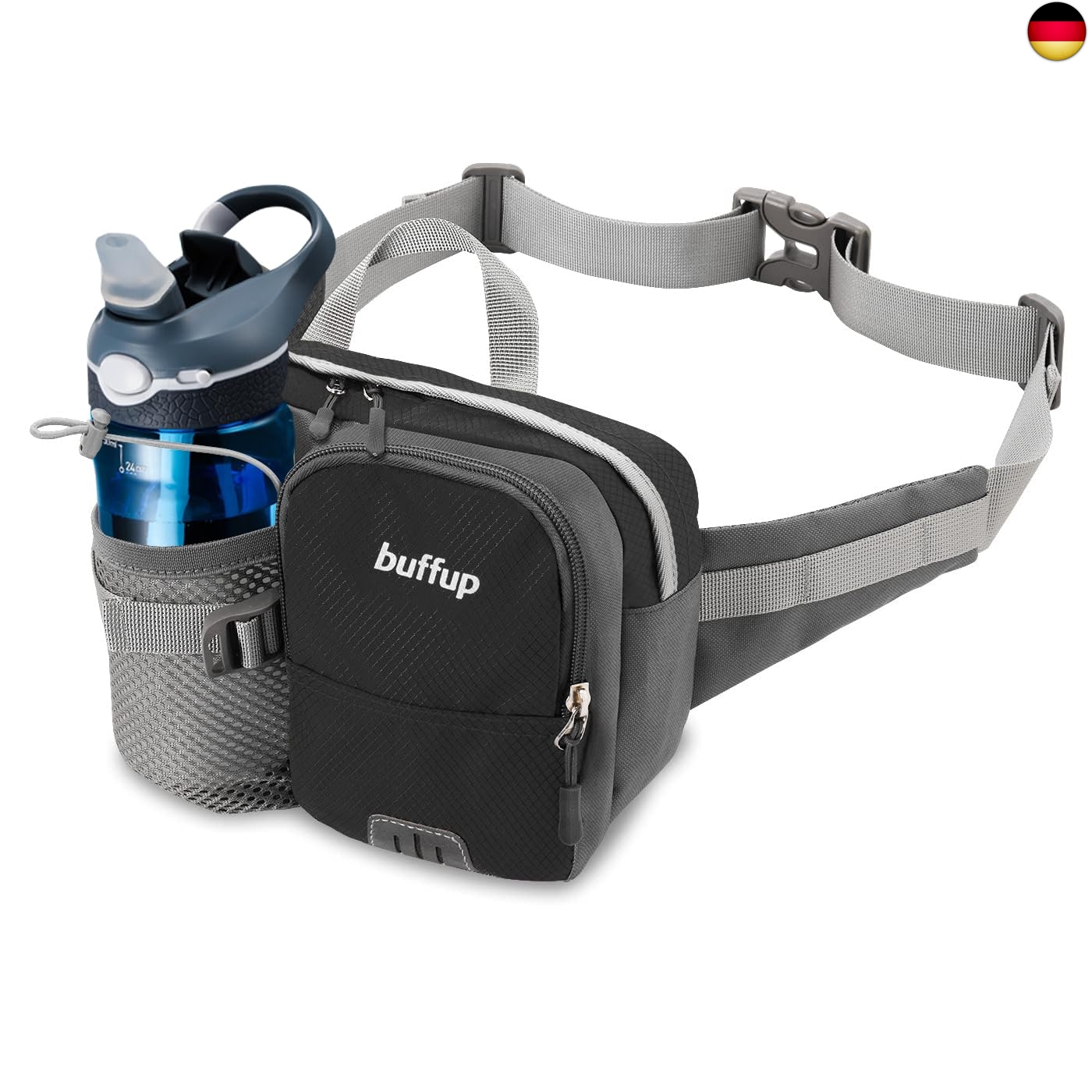 buffup® Bauchtasche mit flaschenhalter,hüfttasche Sport für outdoor hundetraining Radfahren wandern laufen,gürteltasche Damen Herren groß Schwarz