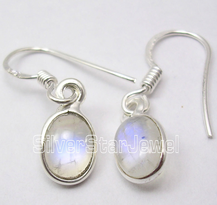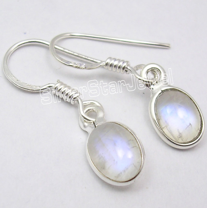 CRAZY HOT DEAL | 6 x 8 mm RAINBOW MOONSTONE Jewelry! 925 Silver Earrings 2.6 CM