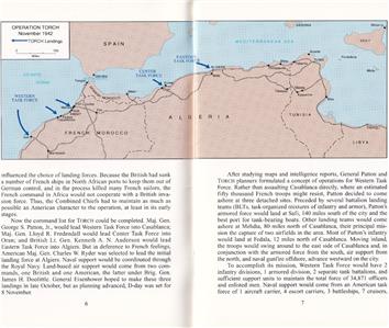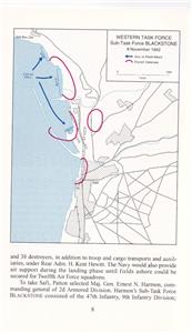 Offered for auction here is the booklet entitled "Algeria-French Morocco". It was code-named "Operation Torch" and was the introduction of US troops into the Mediterranean and North Africa. Axis forces from Italy had invaded North Africa in the late 1930s, and Germany came to the rescue of the inept Italians when the British battled German General Erwin Rommel in Egypt and Libya. "Operation Torch" involved the invasion of Allied troops into French Morocco on the Atlantic Coast, along with landings on Mediterranean cities in Algeria. US armies were led by General George Patton. US troops succeeded in the attack on Morocco and proceeded inland. Other armies took landfall near Oran and Arzew, while a third task force invaded Algeria near Algiers. As a result of the invasions, the Allies gained substantial footholds in North Africa at the cost of relatively few dead and wounded. This publication has some great maps, to include a map of North Africa showing invasion points for "Operation Torch", for the Western Task Force near Safi and Port Lyauley, for the Western Task force near Casablanca, for the Center Task Force near Oran, and for the Eastern Task Force at Algiers.