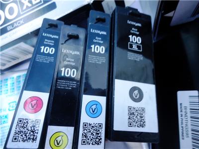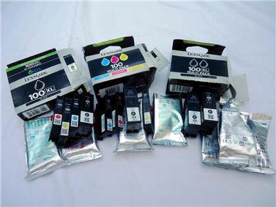 LOT 3 CONSISTING OF 4 LEXMARK 100 XL BLACK CARTRIDGES + 2 CYAN LEXMARK 100 + 2 MAGENTA LEXMARK 100 + 2 YELLOW LEXMARK 100 CARTRIDGES WITH BOXES AND OPEN FOIL AS PER PHOTOS.