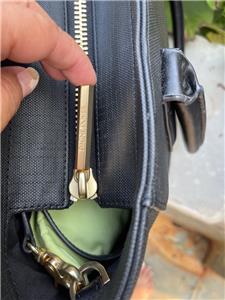 BAG IS IN GOOD USED, NO VISIBLE SCRATCHES, THERE ARE SOME WRINKLE NEAR CORNER AND SLIGHT BENT ON SHAPE (RIGHT SIDE NEAR CORNER) SEE PHOTOS.. INTERIOR SHOWS NO STAINS OR ODOR.
