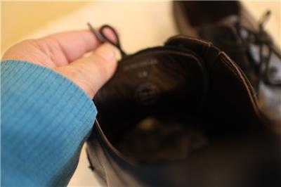 - Cushioned leather insole; leather lining.