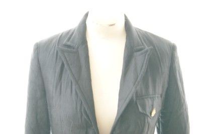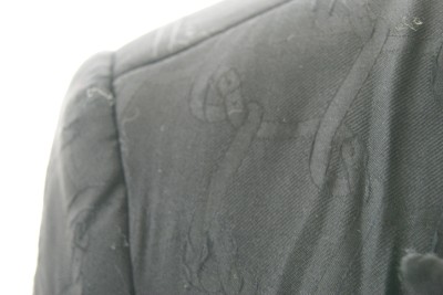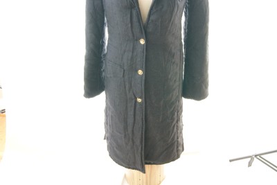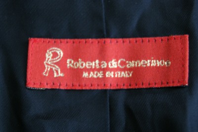 STUNNING THICK SILK JACKET. SILK FABRIC WITH ROBERTA DI CAMERINO LOGO, COMES IWTH 2 FRONT SLITS POCKETS. GOLD TONE BUTTONS WITH R LOGO. LONG LENGTH JACKET.