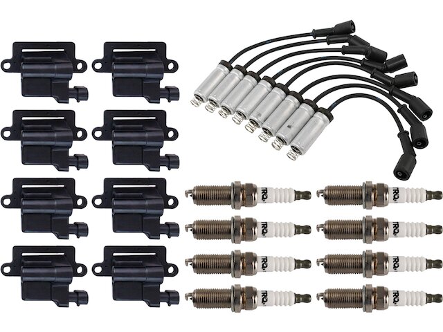 Package Contents: (8) Ignition Coils; (1) Spark Plug Wire Set; (8) Spark Plugs