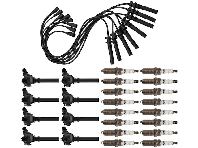 Package Contents: (8) Ignition Coils; (1) Spark Plug Wire Set; (16) Spark Plugs
