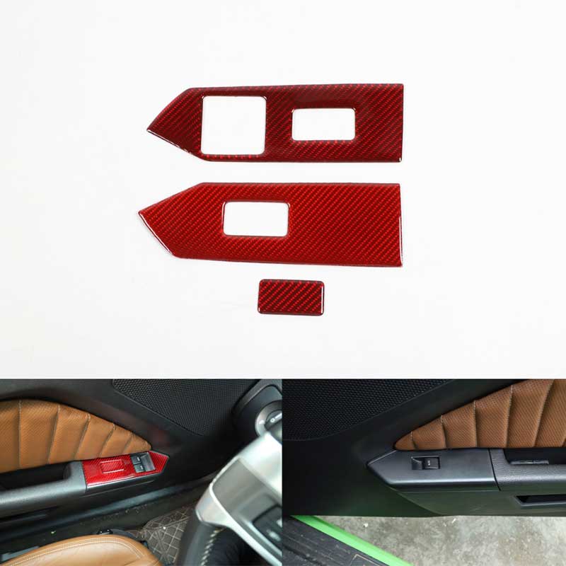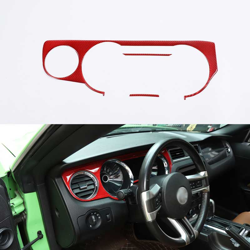 For Ford Mustang 2010-14 Red Carbon Fiber Interior Controle Full Set Cover Trim
