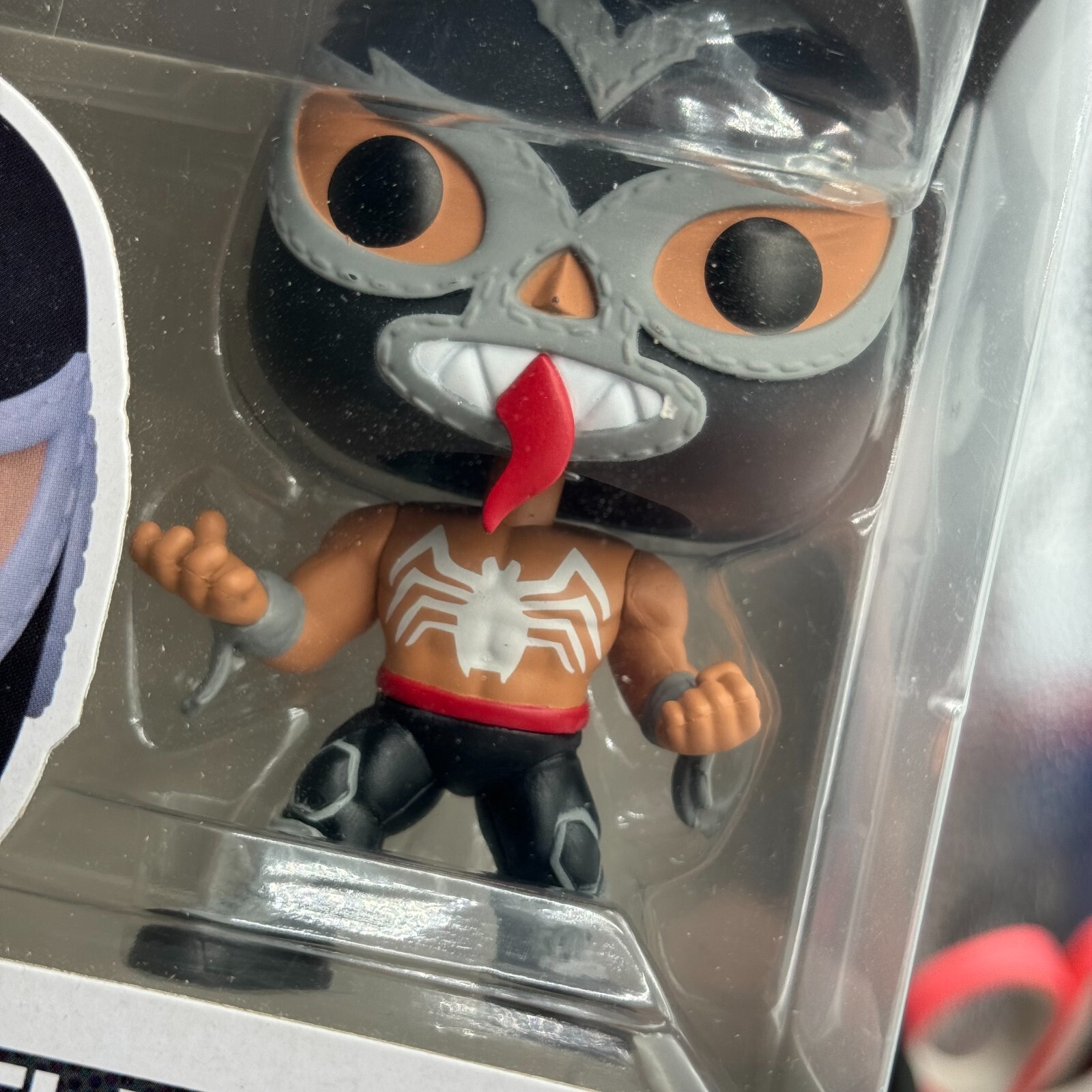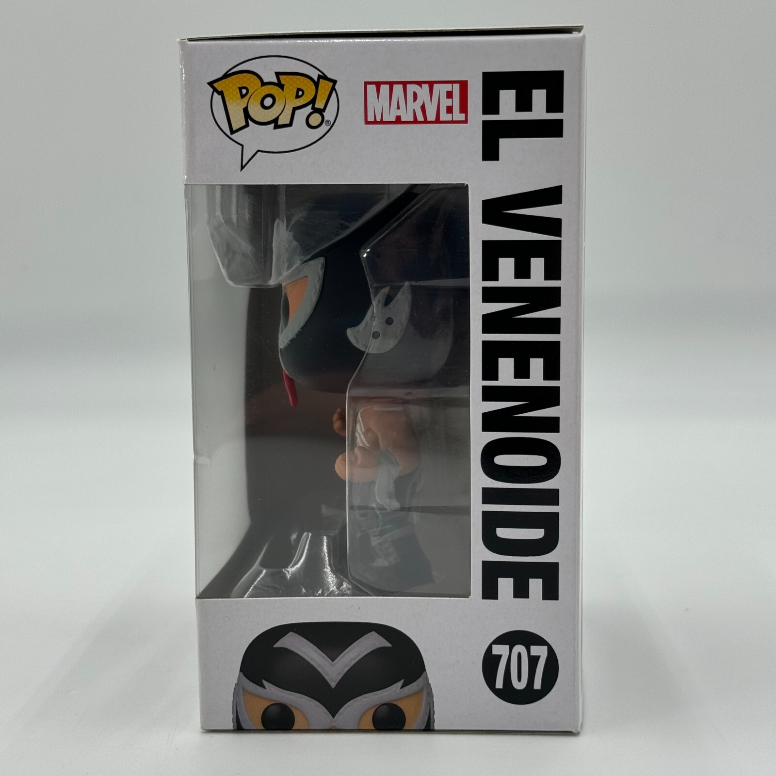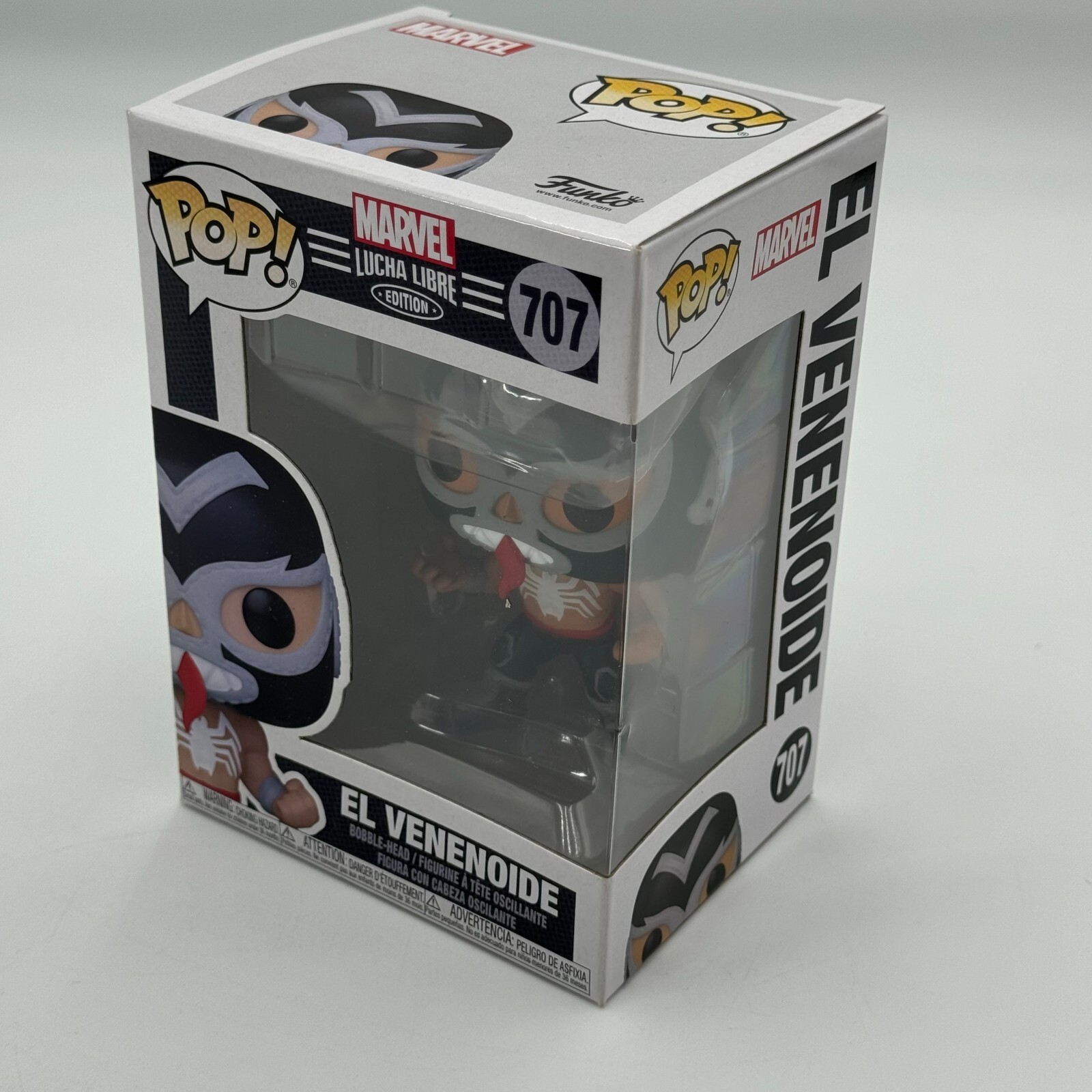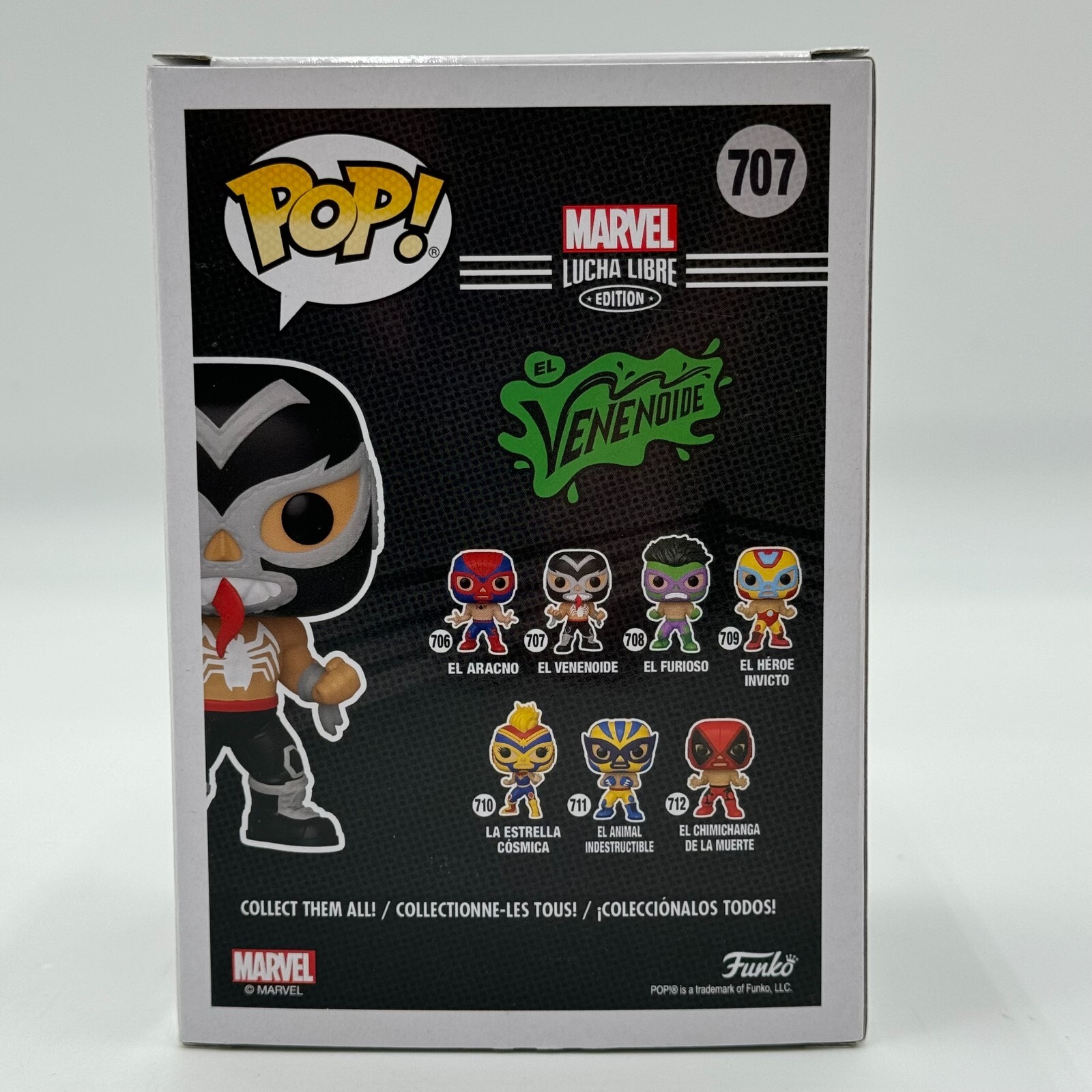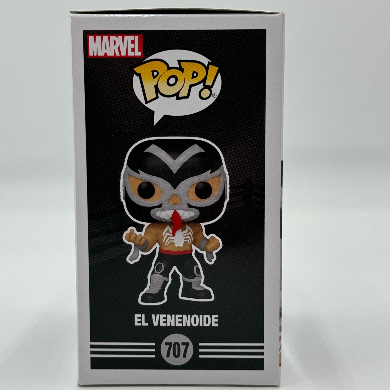 Introducing the Funko Pop! El Venenoide Marvel Lucha Libre Edition Venom #707 Bobblehead, a must-have for any wrestling or Marvel fan.