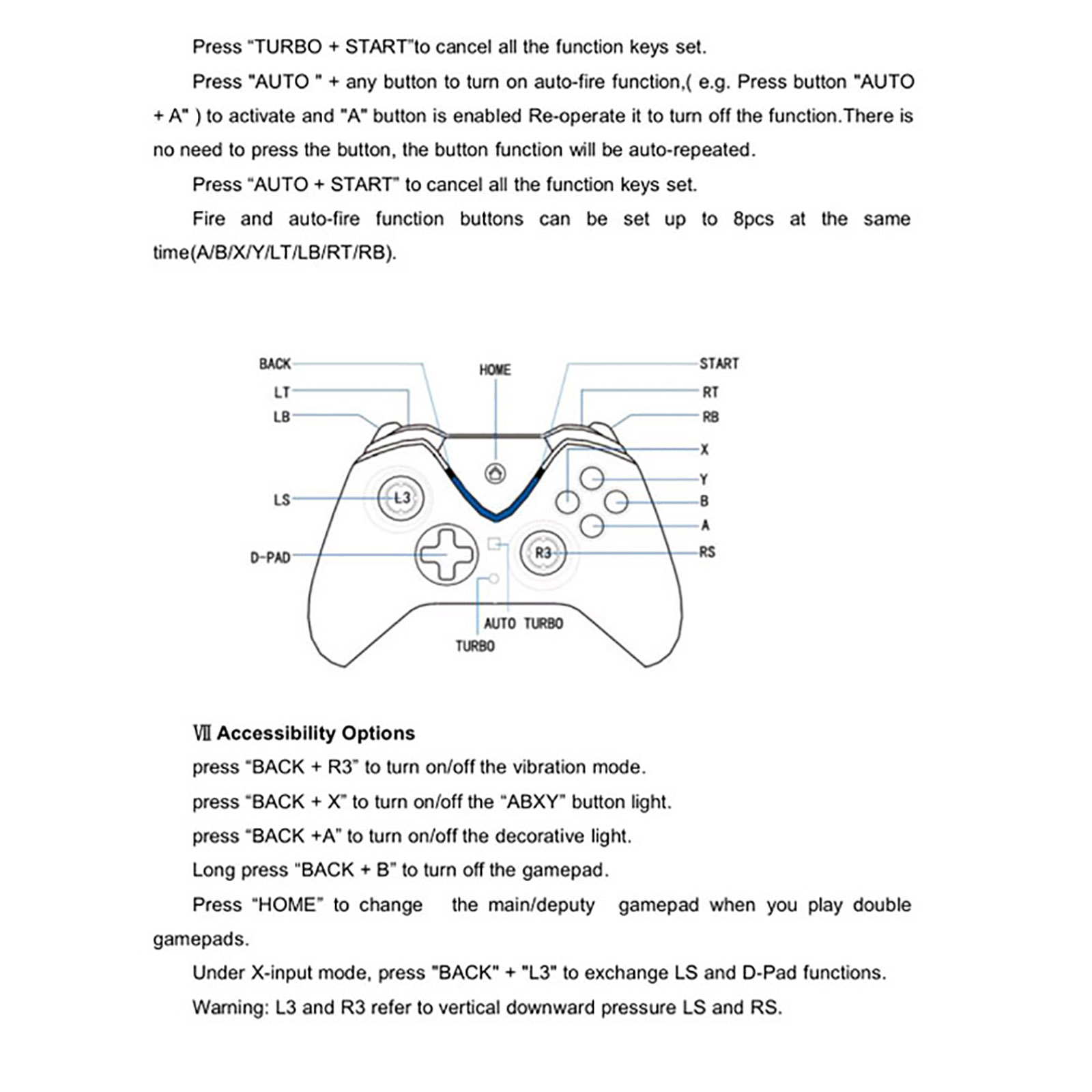 l The controller supports dual motor vibration function