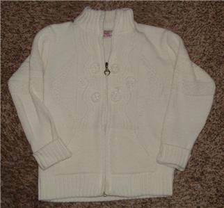 This sweater is size 6-7 years and made by Karagoz Life. It is very gently worn, in excellent to like new condition, no rips or stains. It is made with 70% acrylic and 30% wool and machine washable. It zips up the front, has a flowers on the front with little beads in them and two front pockets. Very nice sweater.