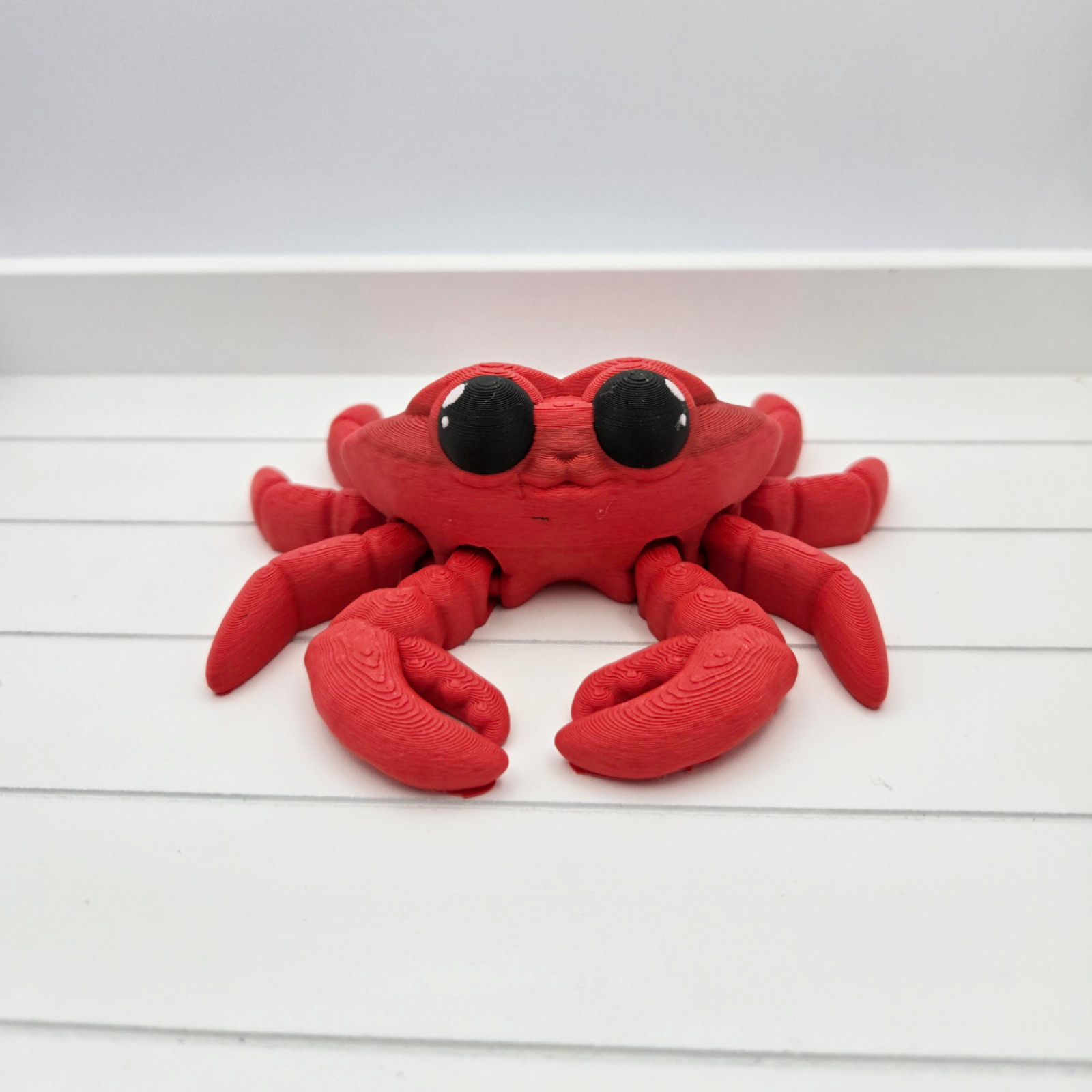 Introducing the Crab 3D Printed Articulated Fidget Toy, perfect for animal lovers and collectors alike. This desk buddy is a fun and unique addition to your collection, featuring a cute and cuddly sea turtle design.The toy is made from PLA material and comes in a variety of colours, making it a great personalised gift.The Crab Fidget Toy has an articulated feature that allows you to pose it in any way you like, making it a great addition to your desk or collection. This collectable item is perfect for those who love sea creatures and want to add a touch of fun to their collection.Get your hands on this unique item today!Size: Length 102mm x Width 120 mm approx== INFORMATION ==Due to the nature of 3D printing, there may be small imperfections or layer lines. These are all normal parts of the 3D printing process and cannot be avoided.Please keep in mind that you will receive a unique item. Our Rainbow filaments transition through many colours. Dual & Tri Colour filaments consists of multiple colours. We do not have control over the exact colour positions on the model so your model may be slightly different from our photos.== CLEANING ==To clean the plastic, do not expose to high heat. The bio-sourced plastic is affected by temperatures above 65 degrees Celsius (150 Fahrenheit).Gently wash with soap and slightly warm water.=== DISCLAIMER ===These are NOT intended for small children or for unattended use as they do have many small parts that can become unattached and become a choking hazard or hazard in general. We take no responsibility for the misuse of this item.Design Copyright: Cinderwing (The Crafty Print Company is an authorised reseller).