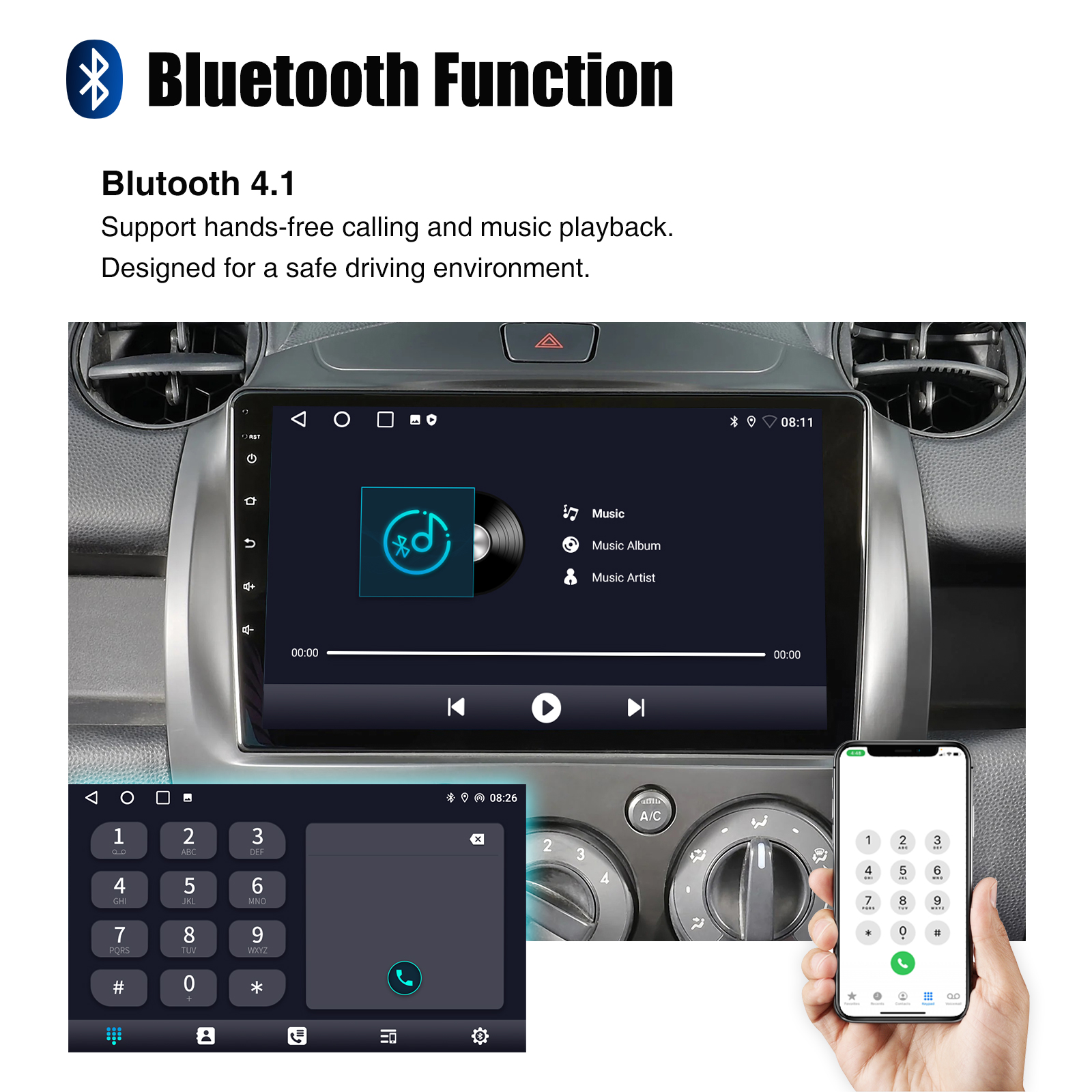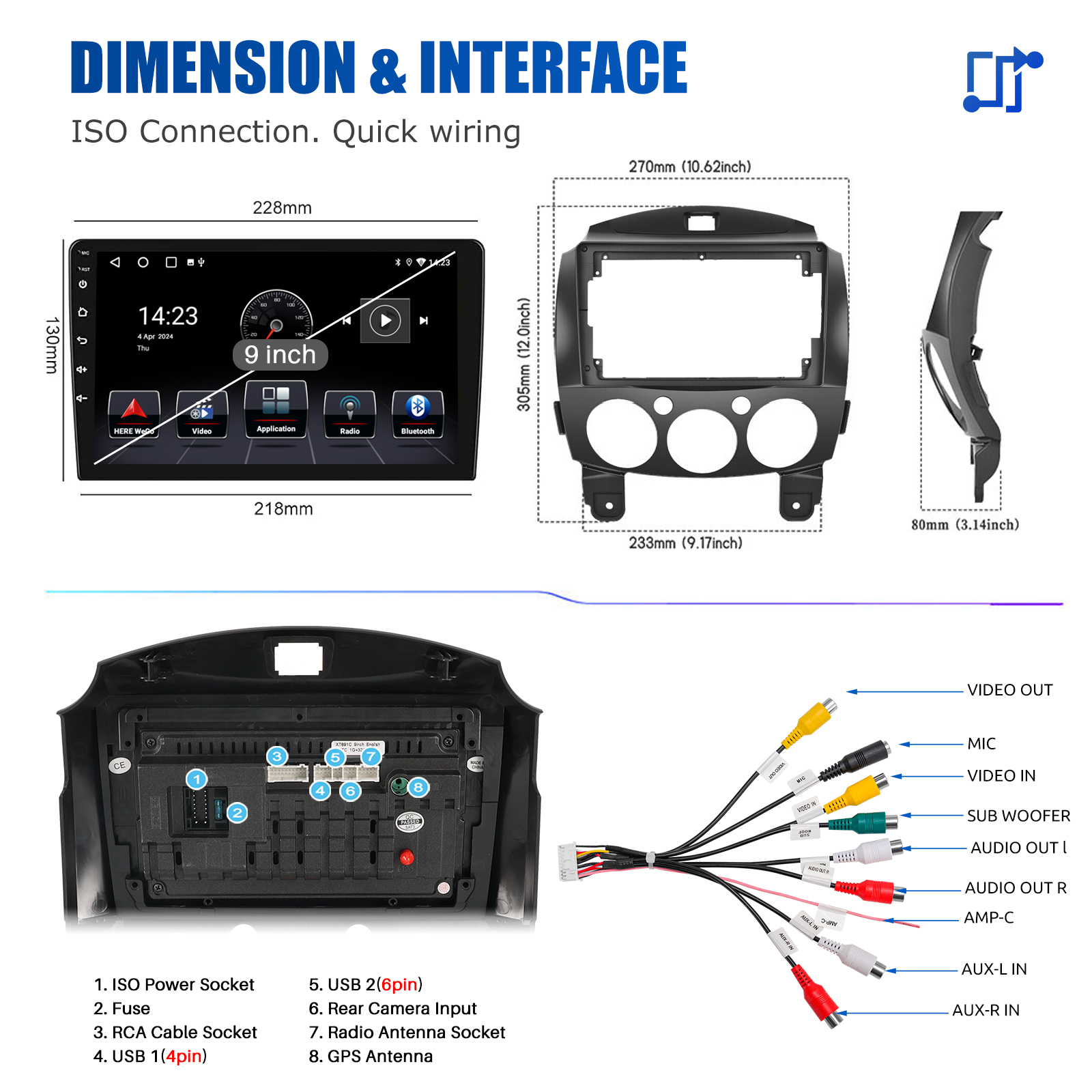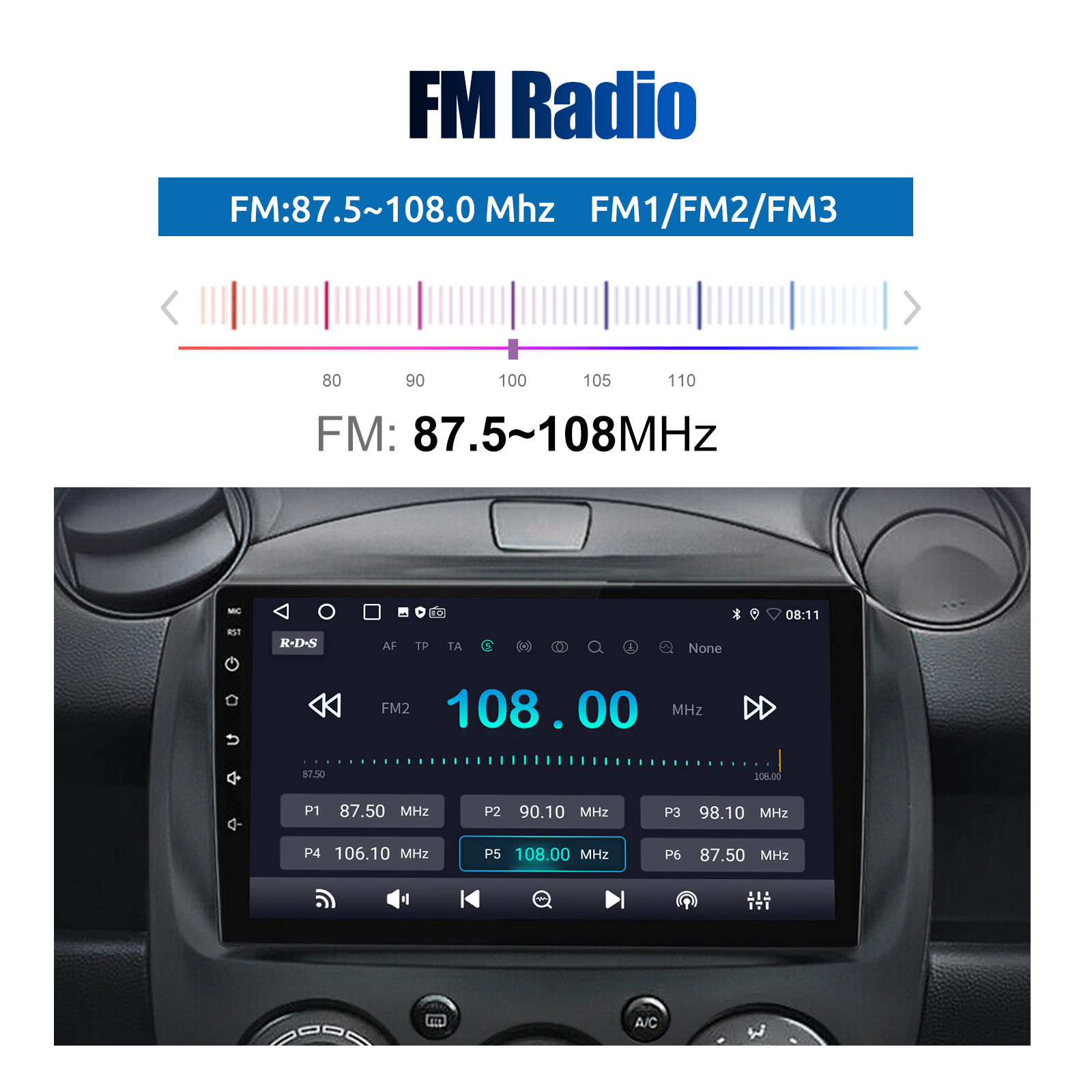 RDS/FM Radio & Bluetooth & ASP Sound Setting: Supports Bluetooth 4.1, with built-in microphone so you can make hands-free calls while driving. Support access to phone book, music playback interface, etc. RDS supported. You can save 18 FM radio stations. Built-in ASP chip. Supports 32-band EQ setting, which can be adjusted according to your personal preference. Which is very similar to your original sound. 4 x 45W amplifier, surround sound and subwoofer output