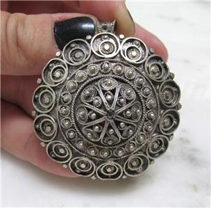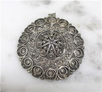 Vintage 935 Silver Round Dangle Pendant / Pin