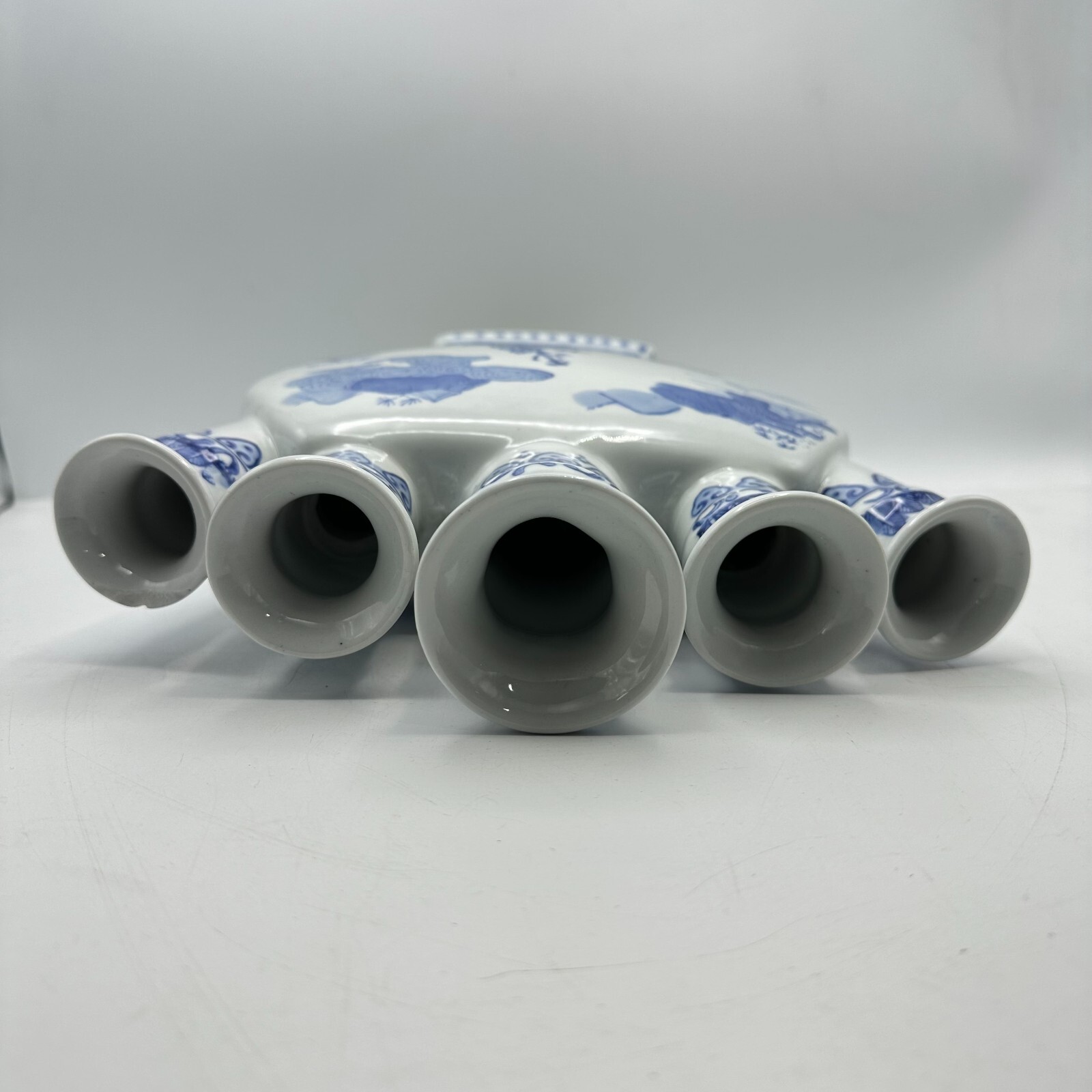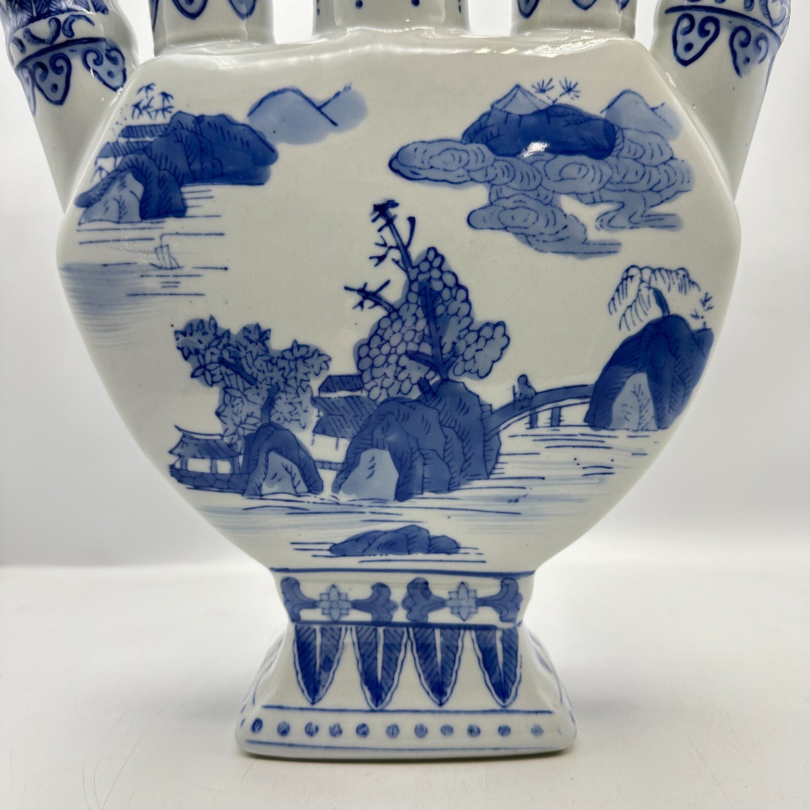 This vintage chinoiserie tulip vase is a beautiful piece that will add a touch of elegance to any room.