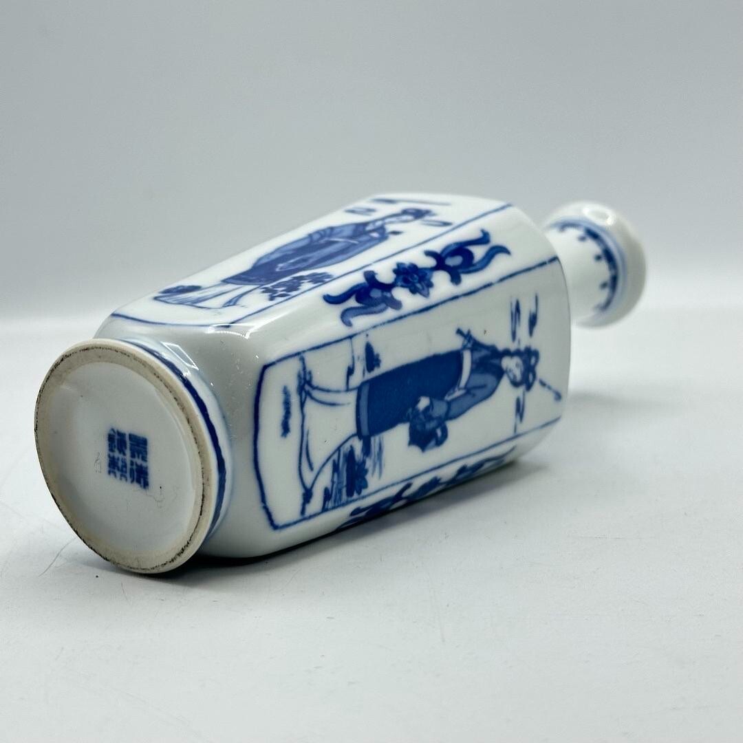 This vintage porcelain vase features a beautiful blue and white female figure motif that adds a touch of elegance to any room.