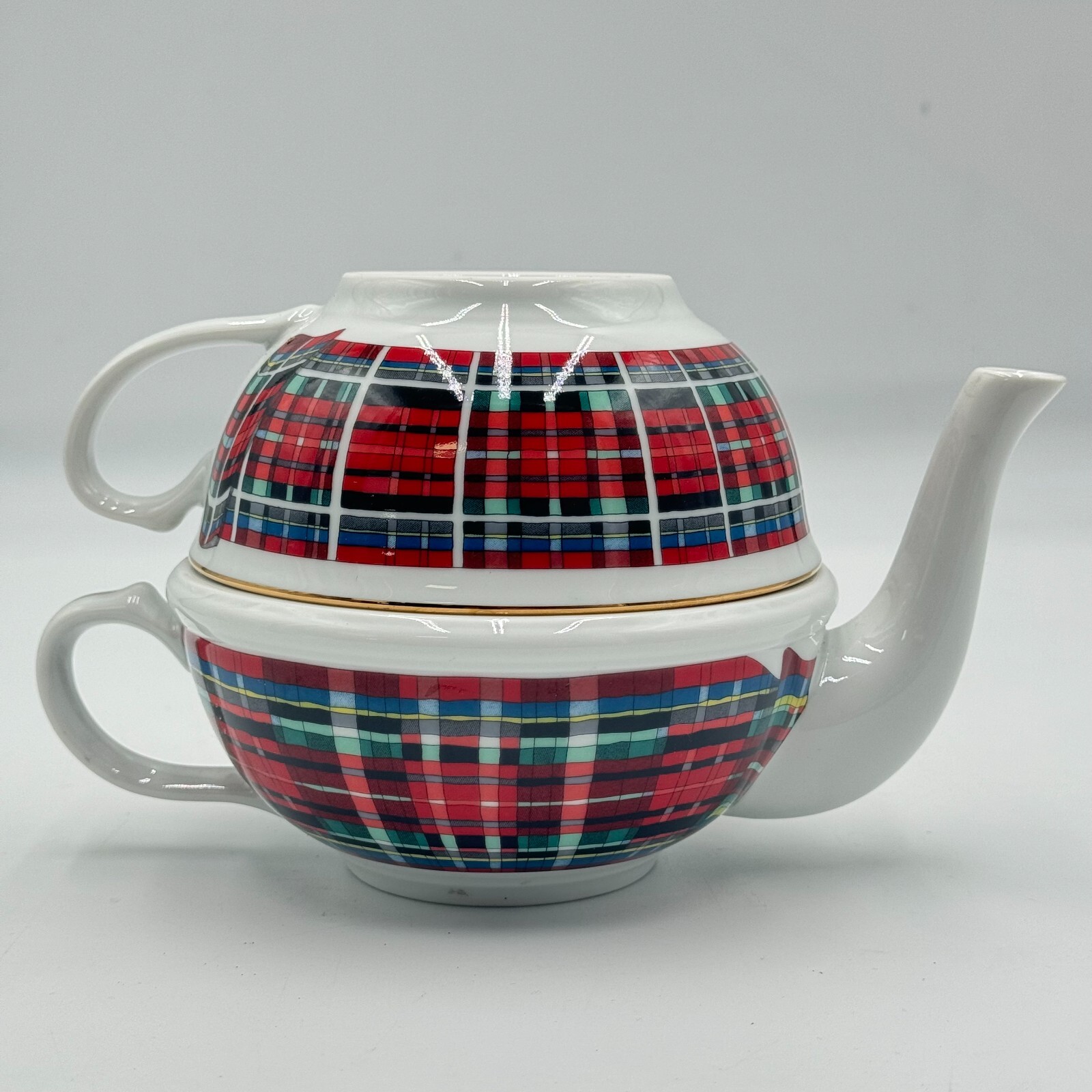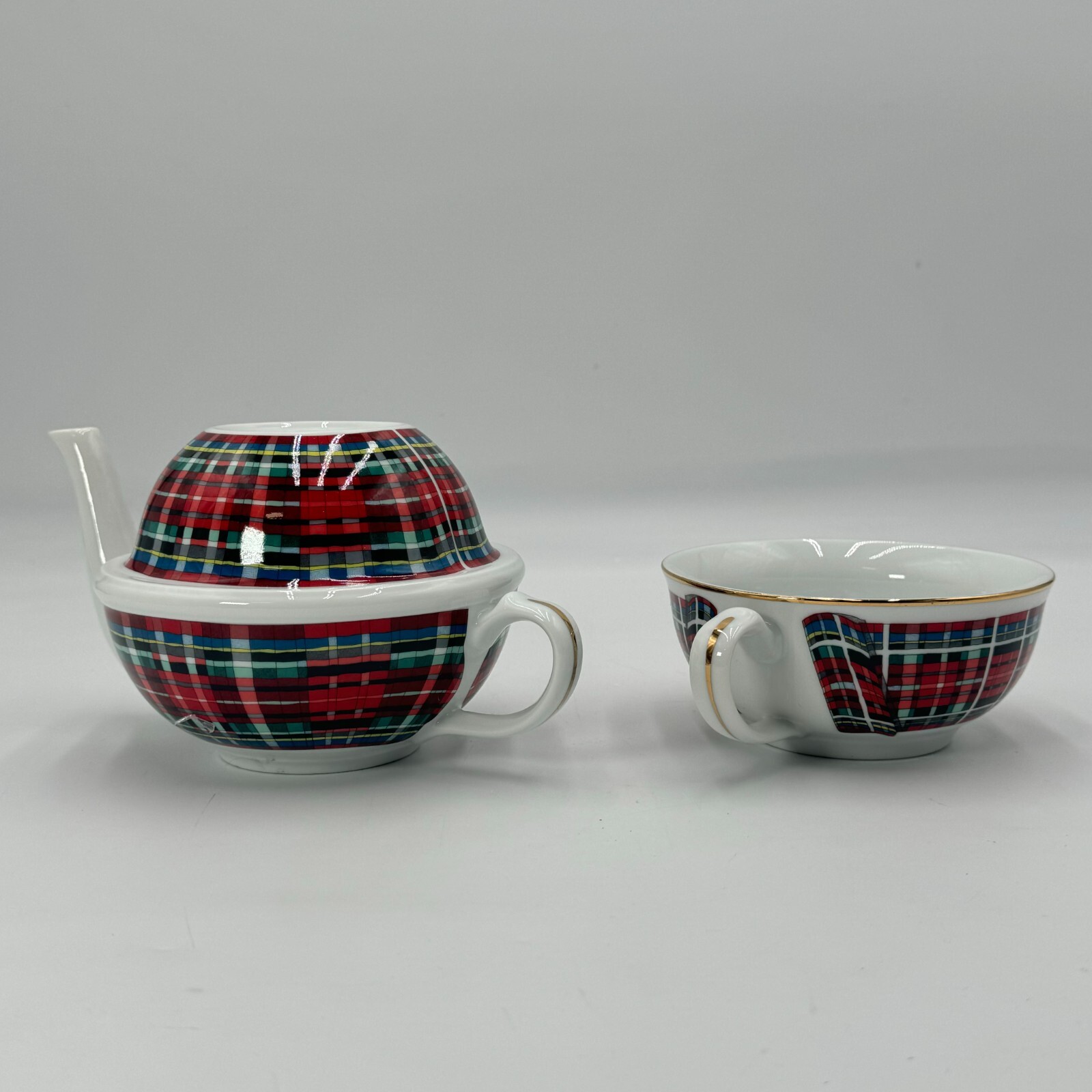 This Williams-Sonoma Stuart Dress Tartan Plaid Tea Pot with Stackable Cup Coffee Mug is the perfect addition to your collection.
